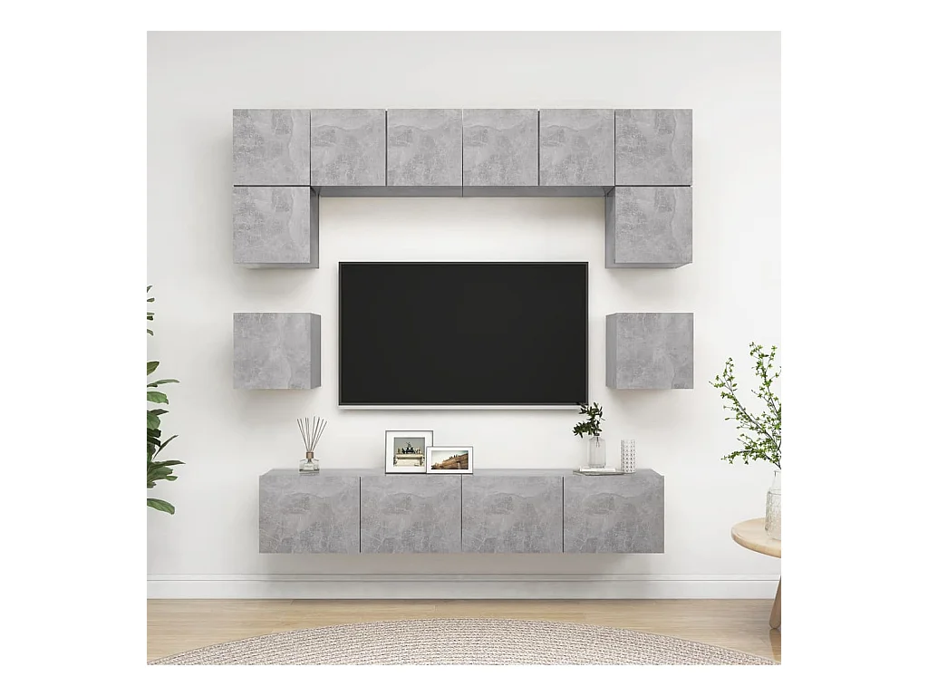 Ensemble de meubles TV 8 pcs Gris béton Bois d'ingénierie