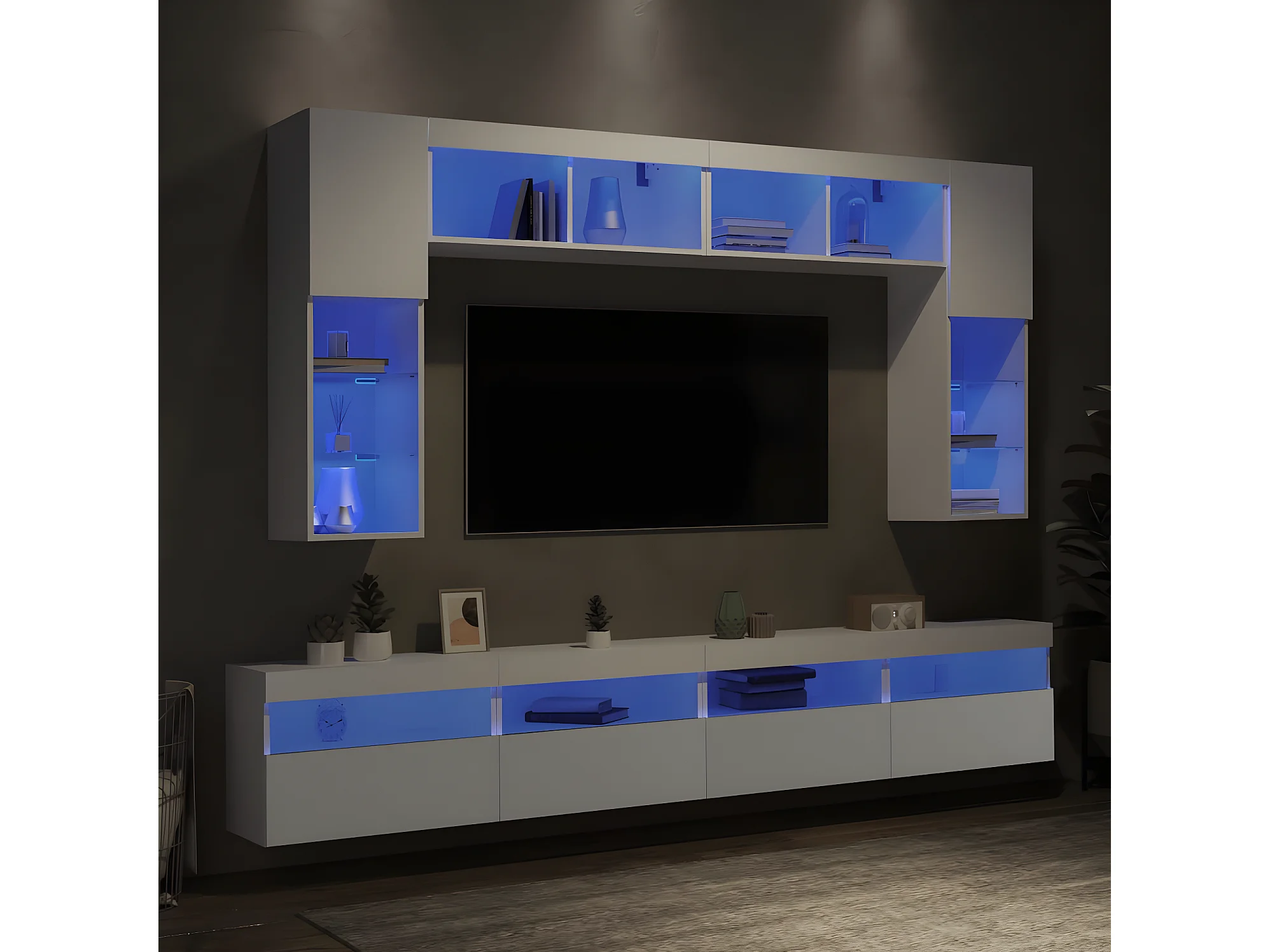 Ensemble de meubles TV muraux 8 pcs avec lumières LED blanc WET9737