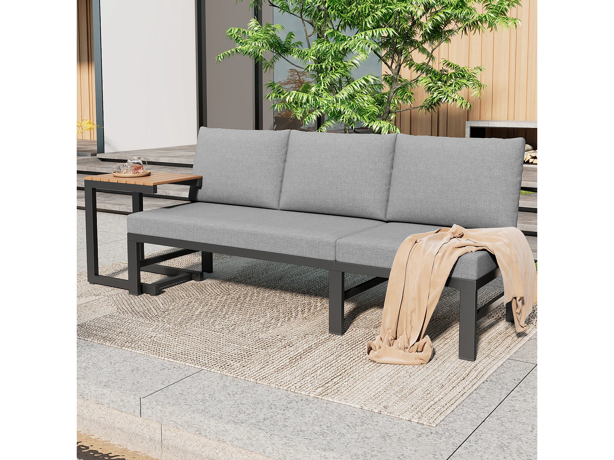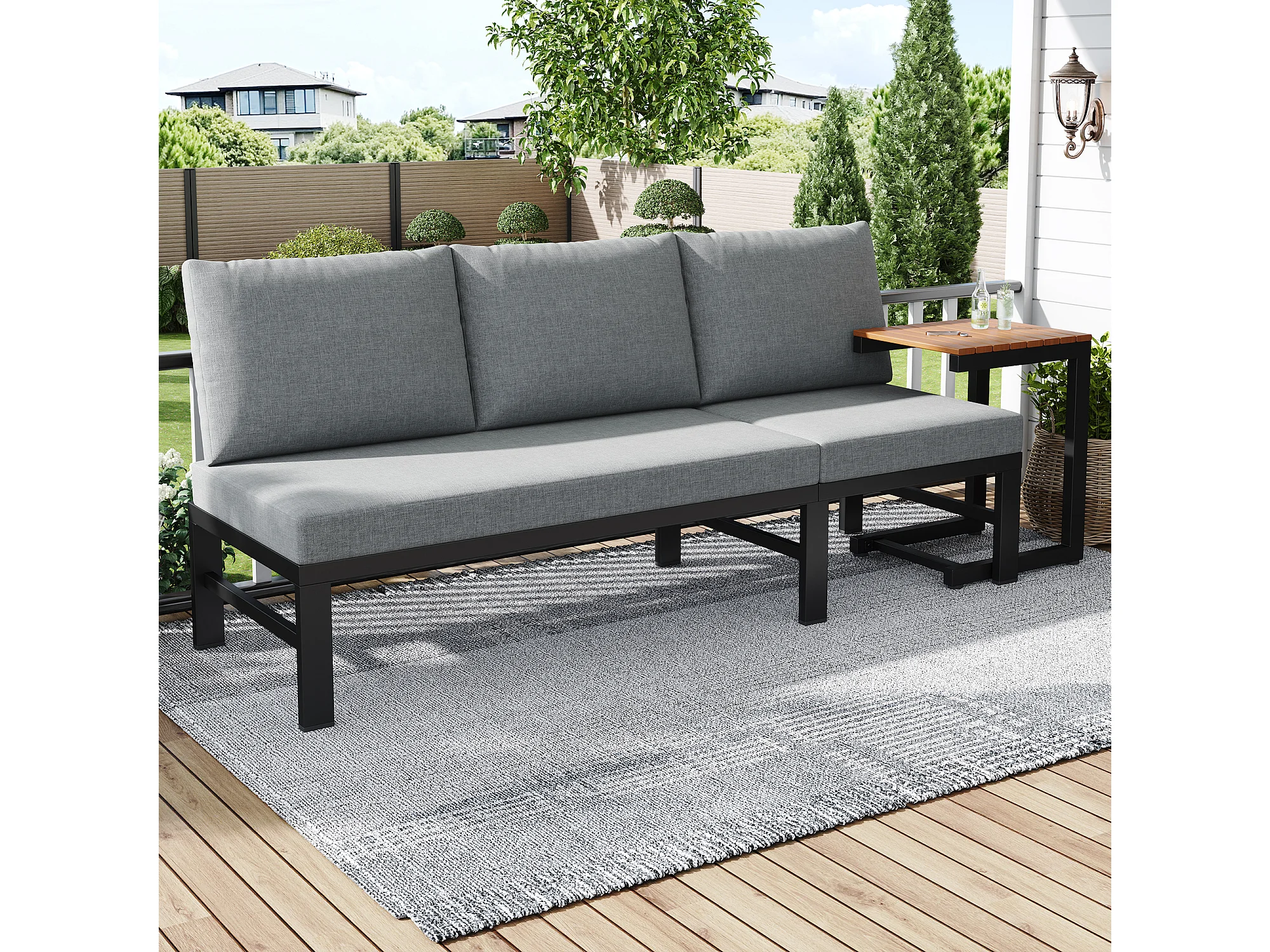 Ensemble de mobilier de jardin - 173 x 69 x 82 cm - canapé 3 places inclinable réglable + table - métal + Polyester - gris