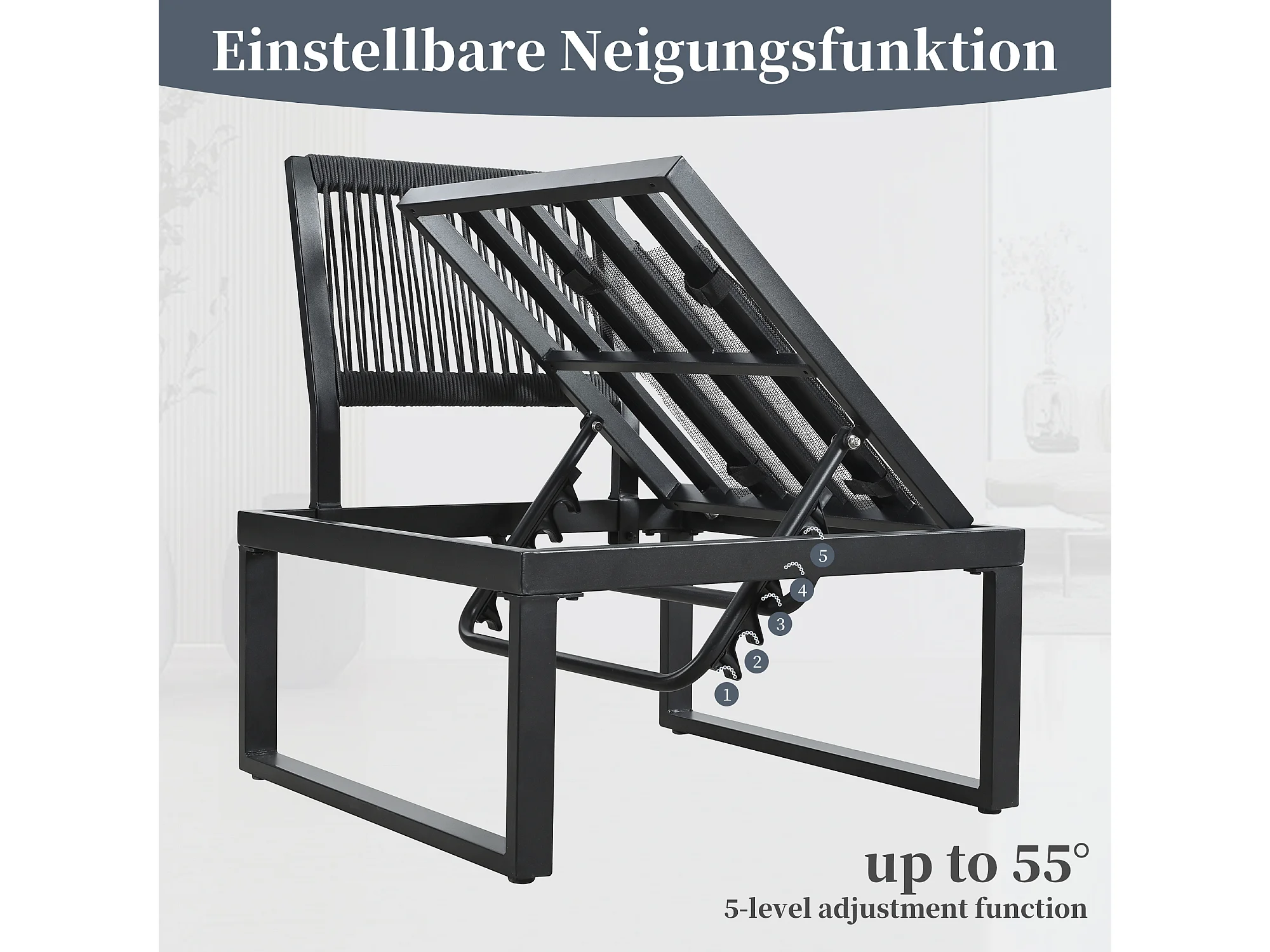 Ensemble de mobilier de jardin - 252 x 195 x 76 cm - avec canapé inclinable + 2 tables basses - Polyester + métal - noir + gris