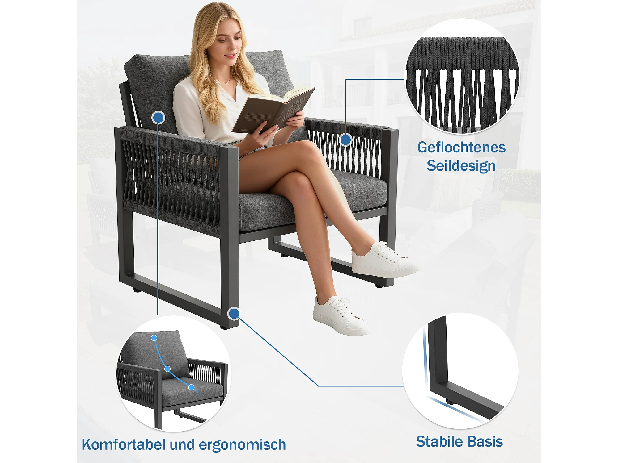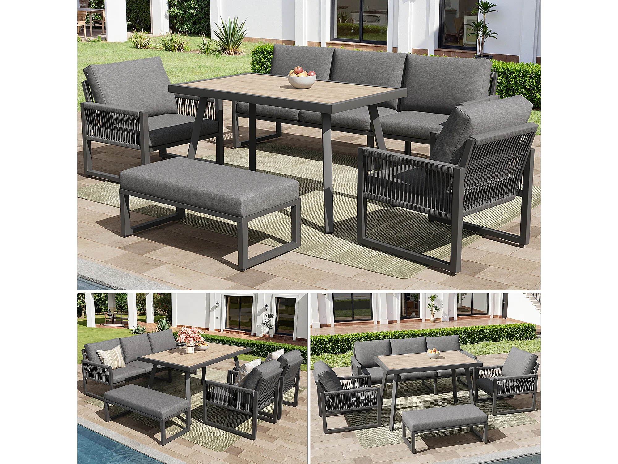 Ensemble de mobilier de jardin 6-7 places - ensemble canapé de jardin avec table + coussins d'assise et de dossier - métal - gris