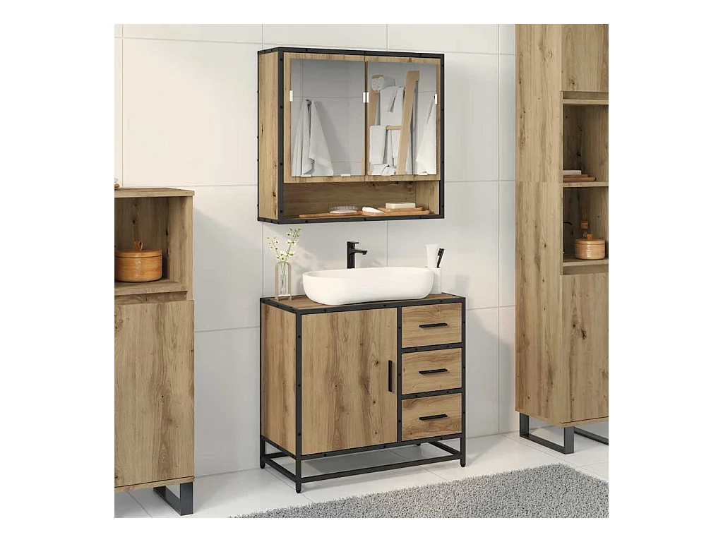 Meuble de Lavabo de Salle de Bain avec tiroir chêne artisanal