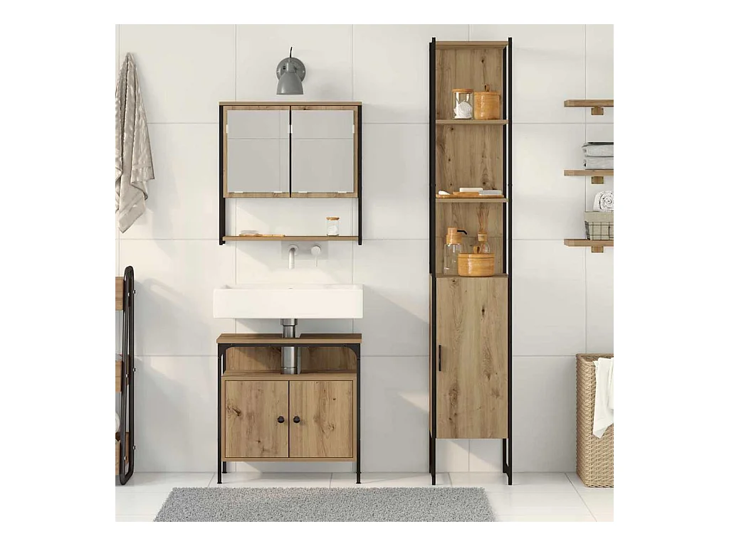 Ensemble de mobilier de salle de bain 3 pcs chêne artisanal