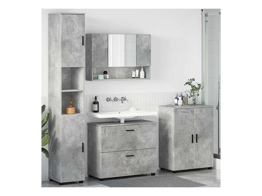 Ensemble de mobilier de salle de bain 4 pcs Gris béton