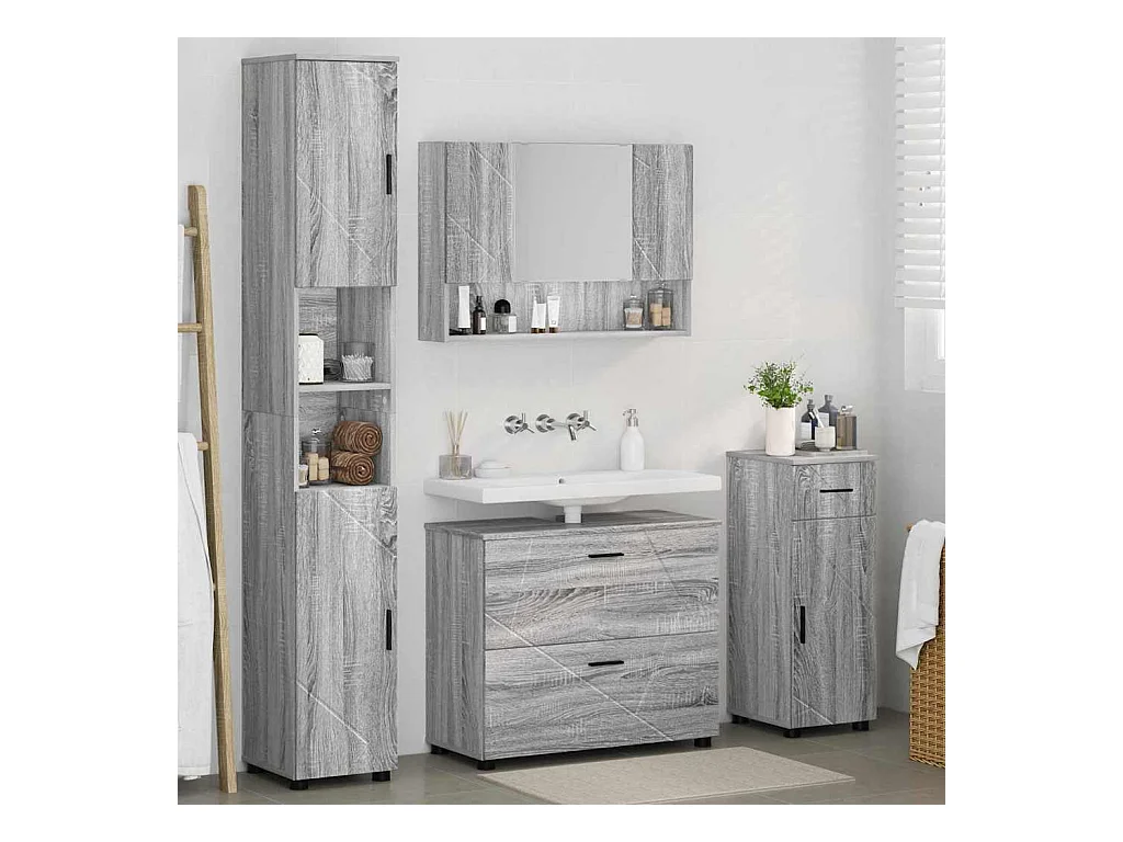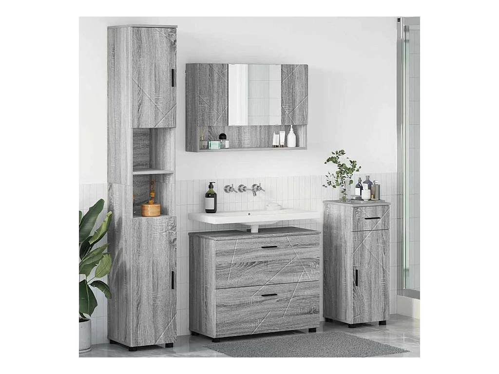 Ensemble de mobilier de salle de bain 4 pcs Sonoma gris
