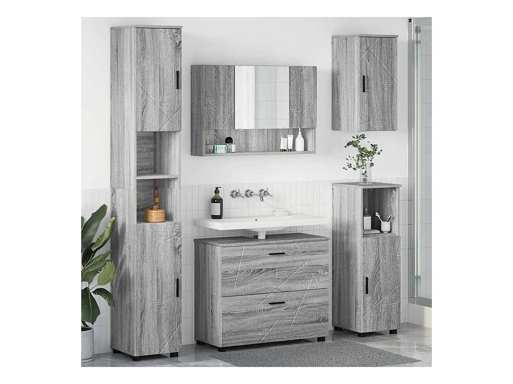 Ensemble de mobilier de salle de bain 4 pcs Sonoma gris