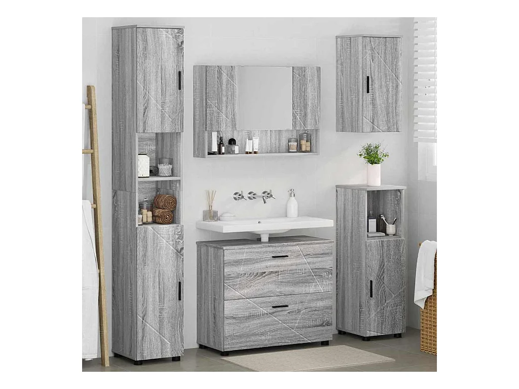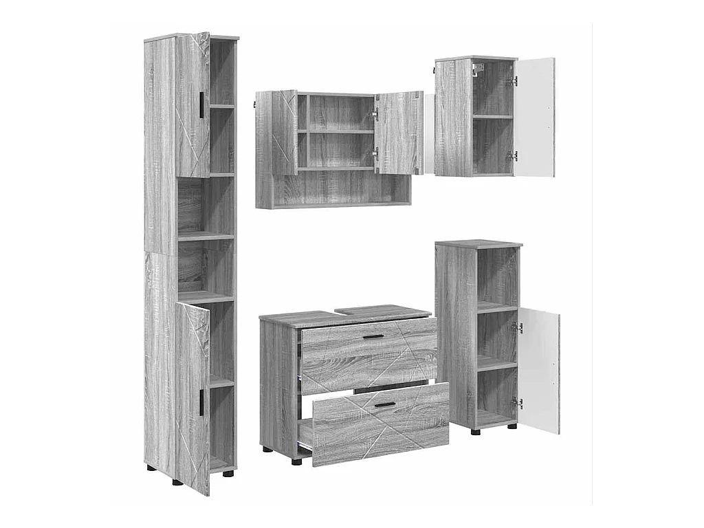 Ensemble de mobilier de salle de bain 5 pcs Sonoma gris