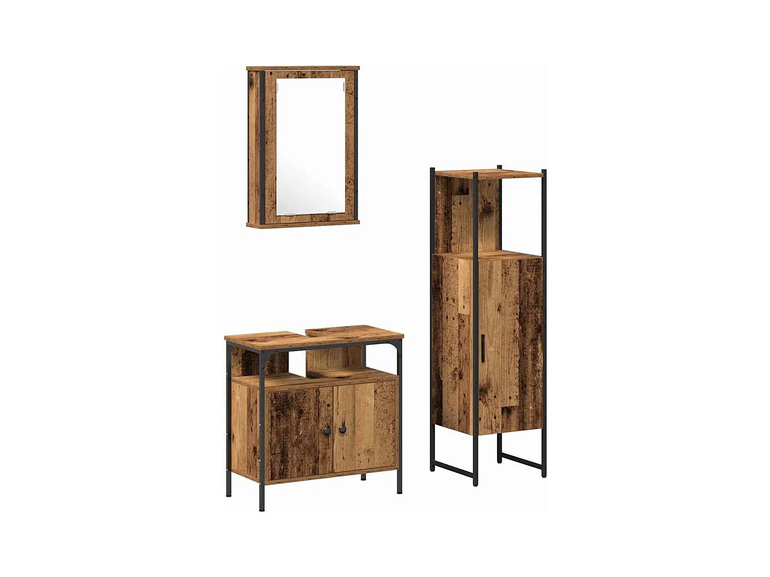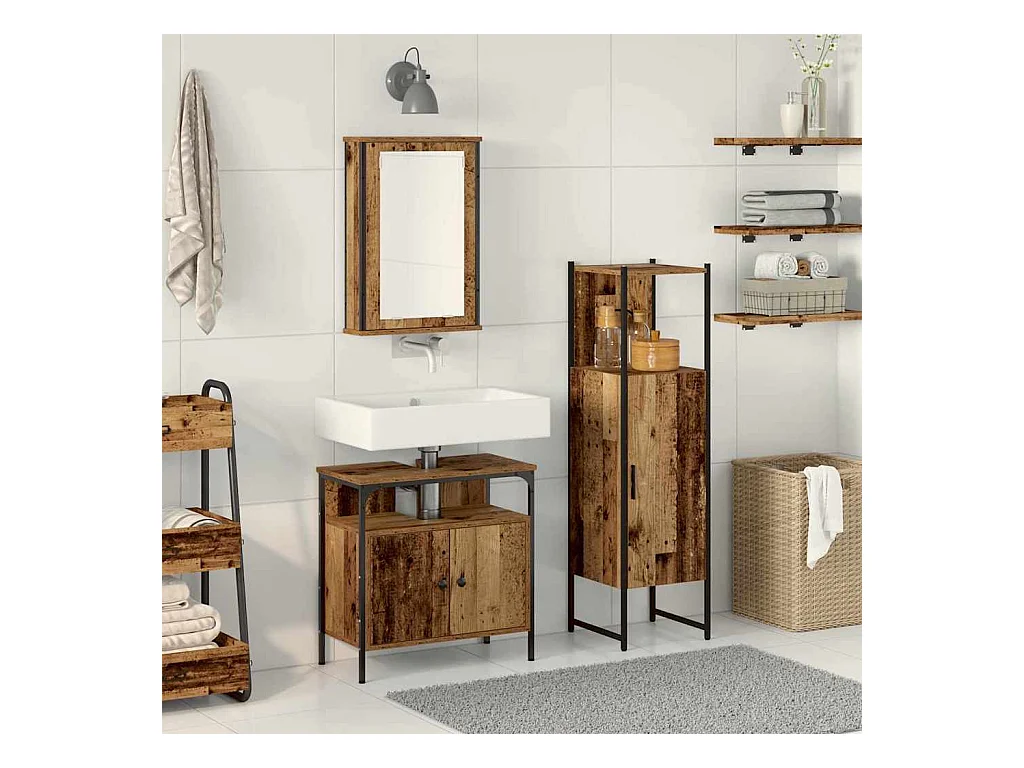 Ensemble de mobilier de salle de bain avec porte 3 pcs Marron