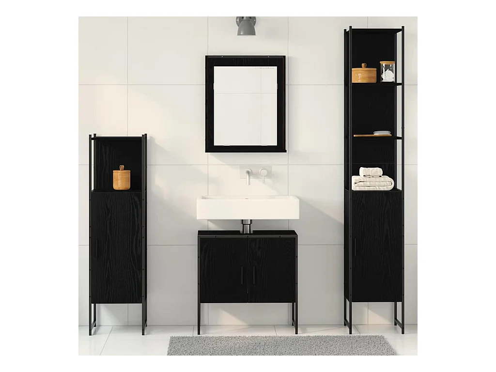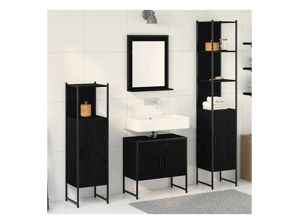 Ensemble de mobilier de salle de bain avec stockage 4 pcs Noir