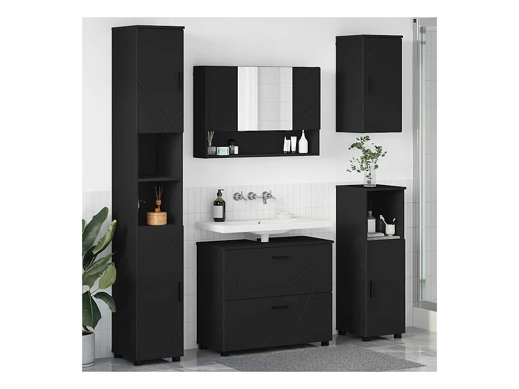 Ensemble de meubles de salle de bain Noir Aggloméré
