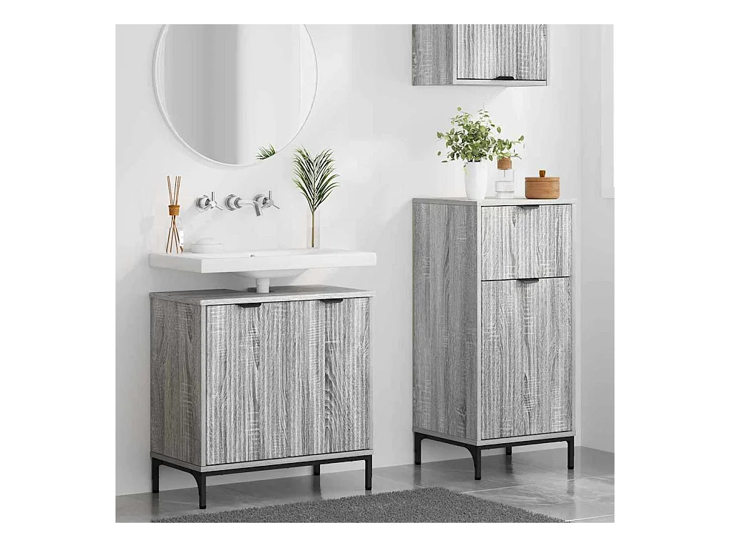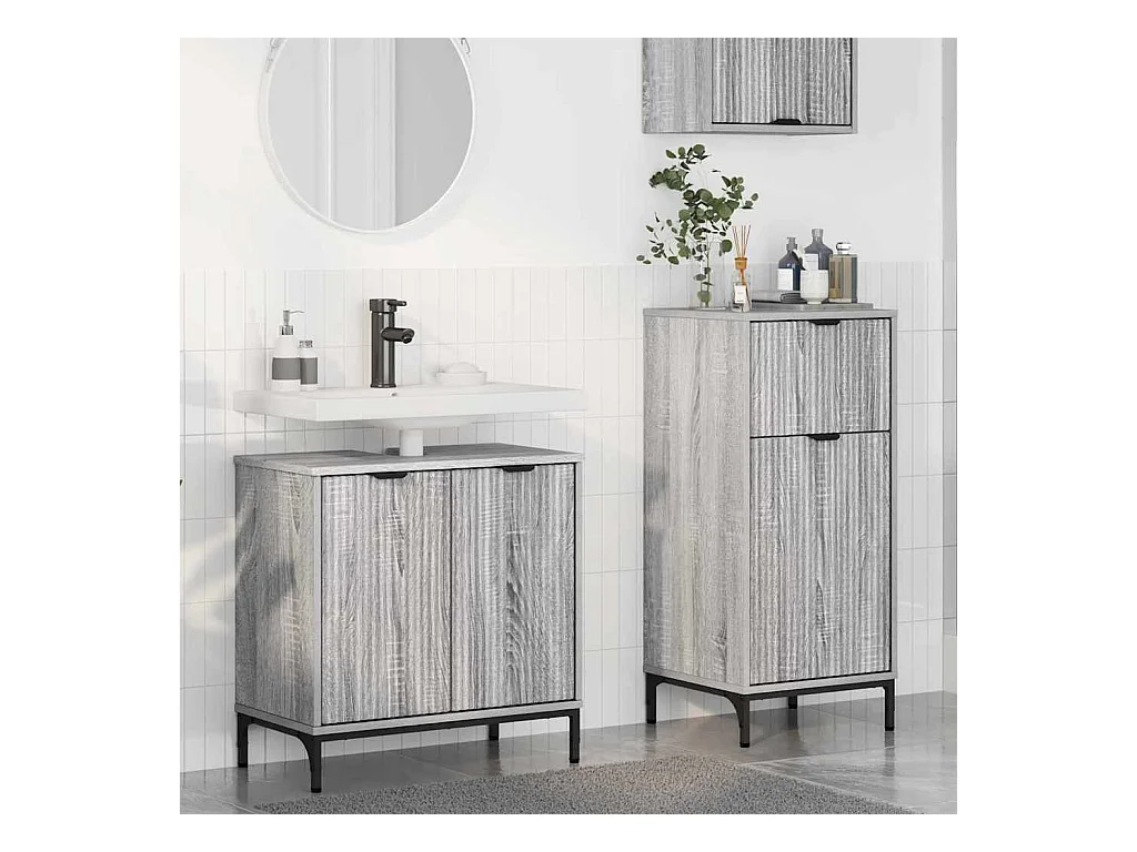 Ensemble de meubles de salle de bain 3 pcs Sonoma gris