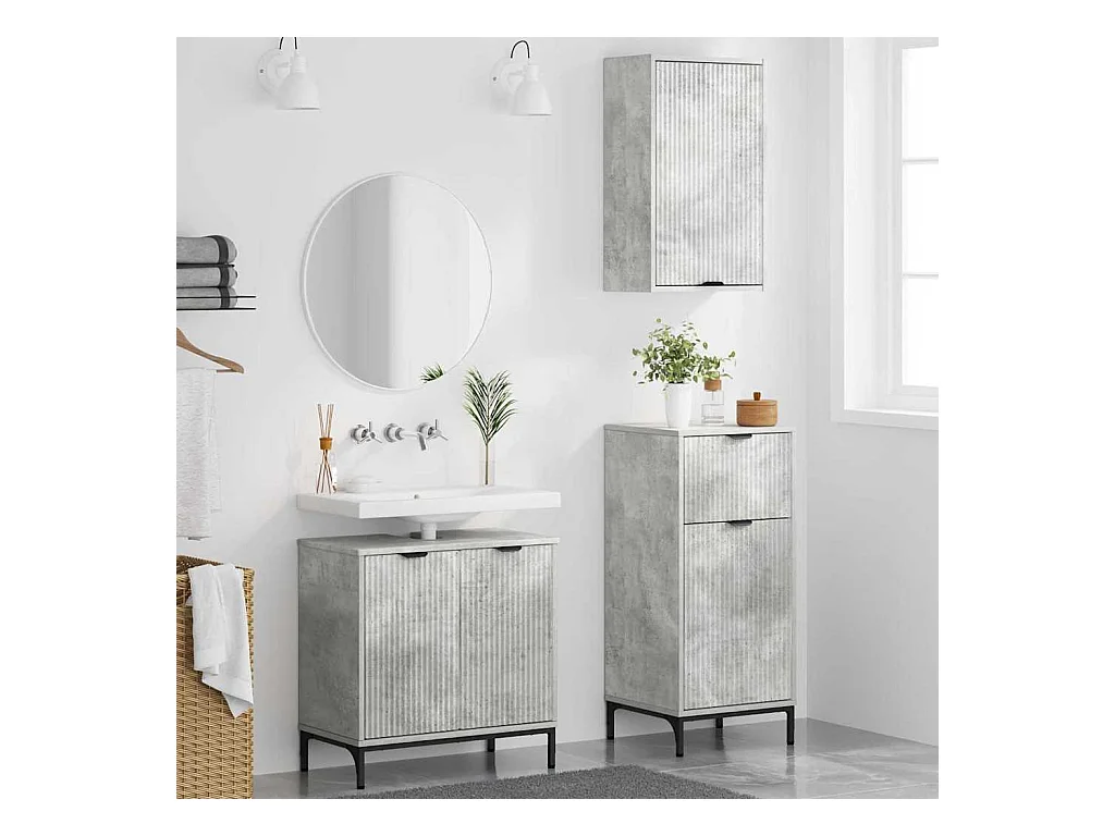 Ensemble de mobilier de salle de bain Plaid 3 pcs Gris béton