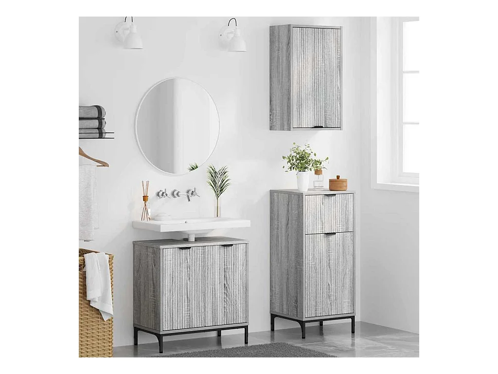 Ensemble de meubles de salle de bain 3 pcs Sonoma gris