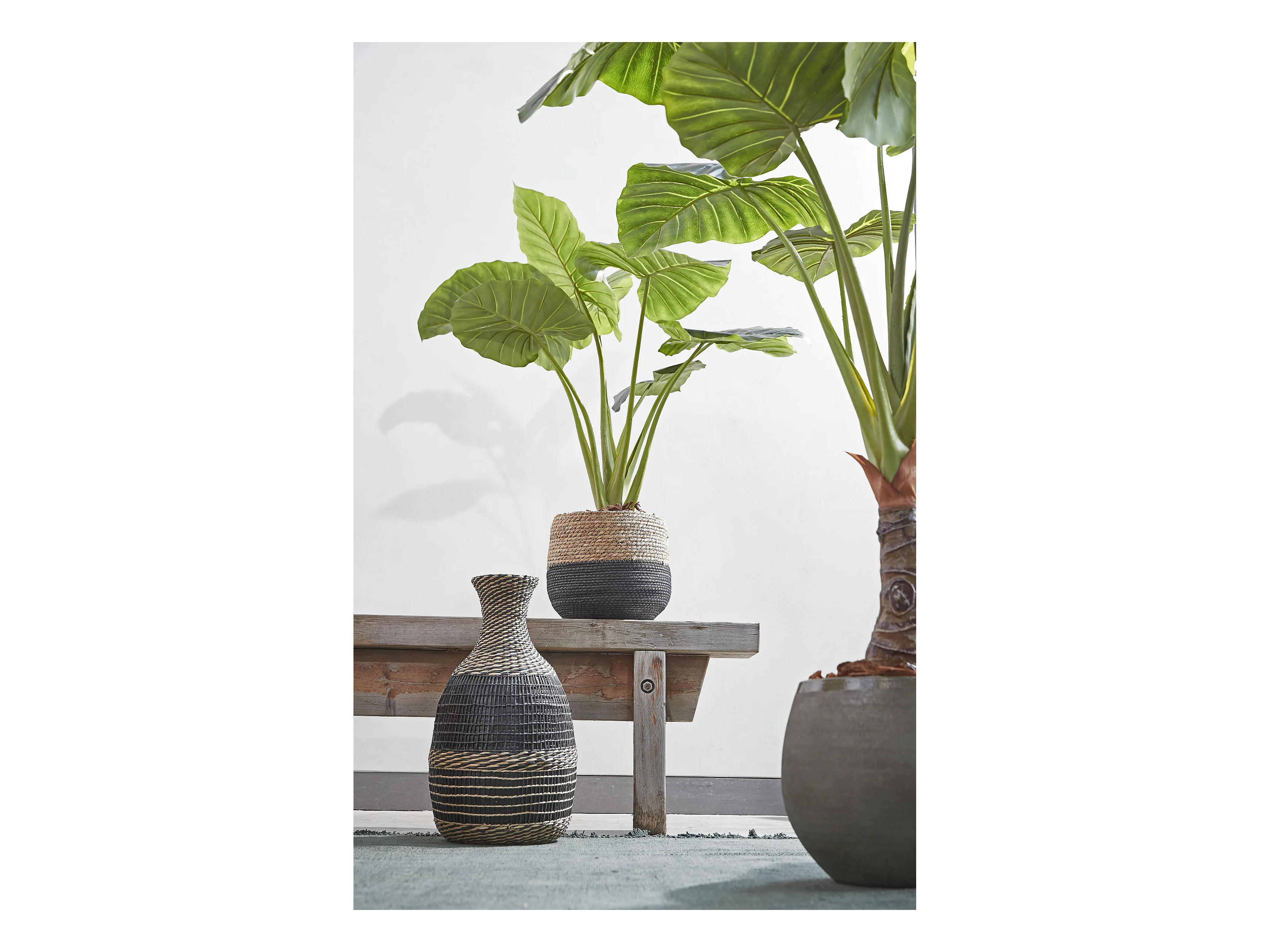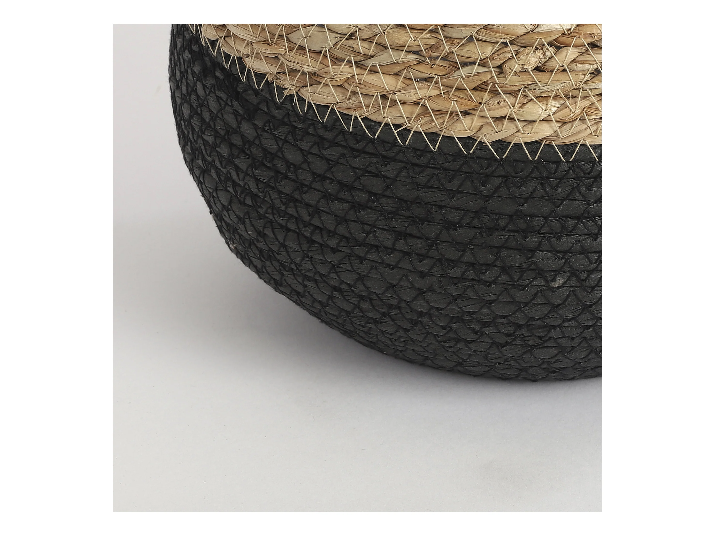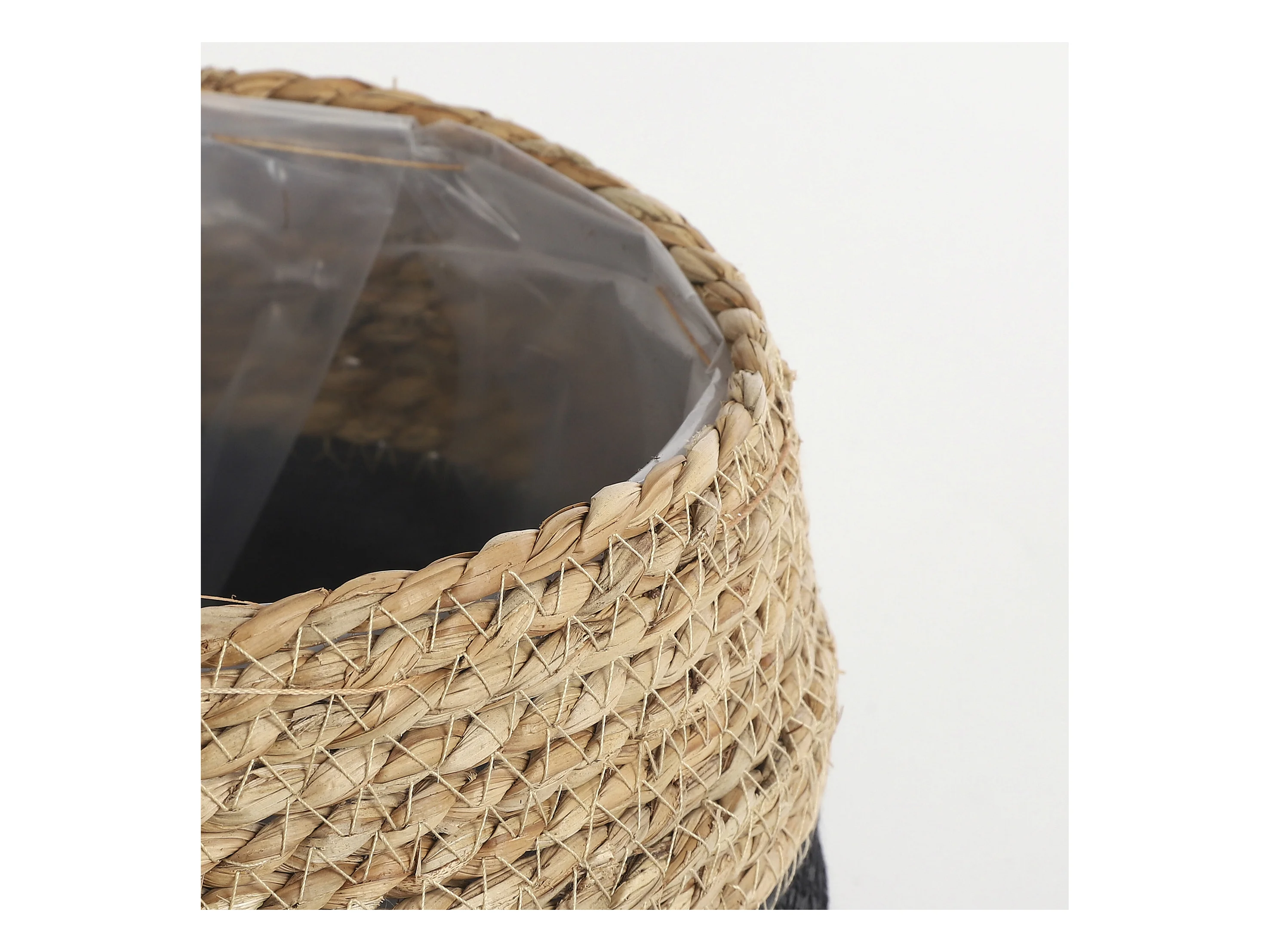 Ensemble de panier a plantes en jonc de mer et plastique - Ø26 x 24 - Noir, marron clair - JORCK