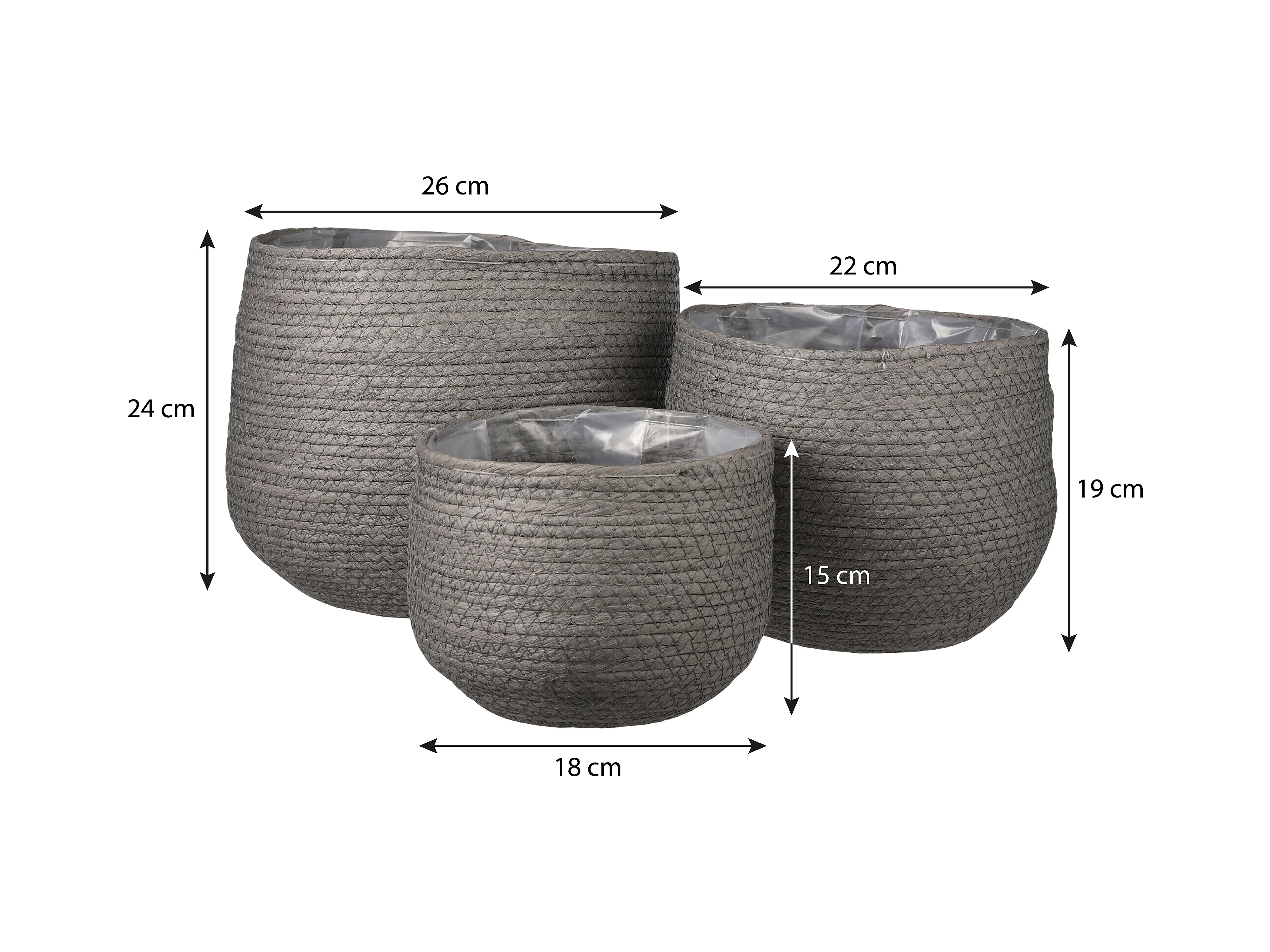Ensemble de panier a plantes en papier et plastique - Ø26 x 24 - Gris - JORCK