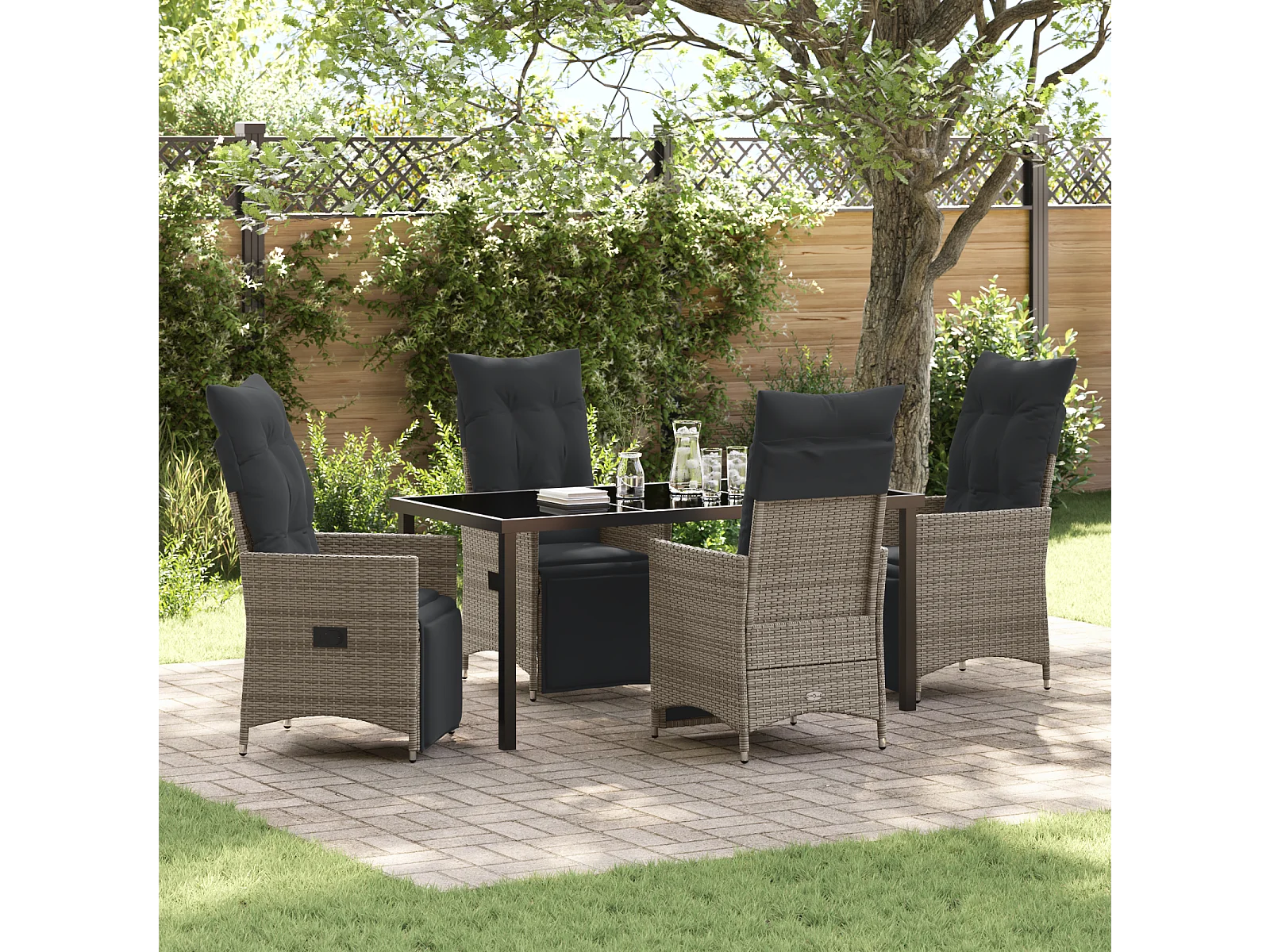 Ensemble de repas de jardin 5 pièces avec coussins gris poly rattan