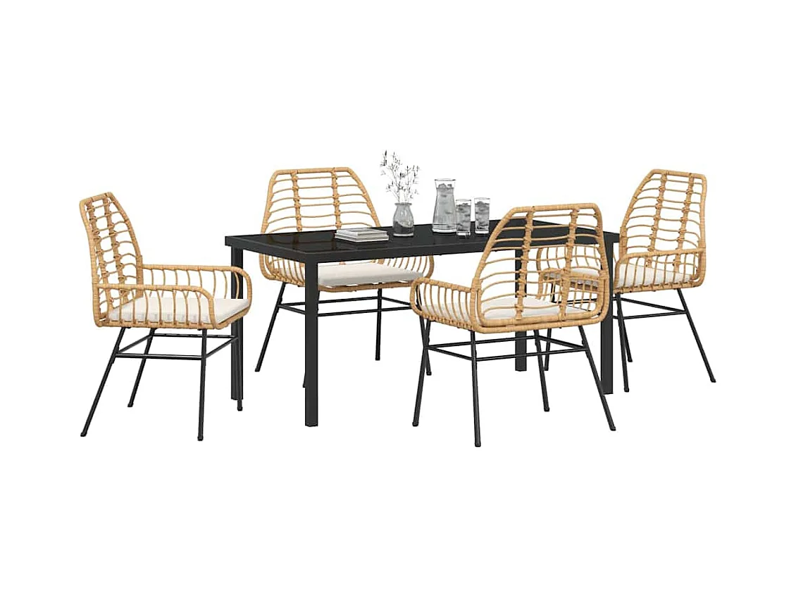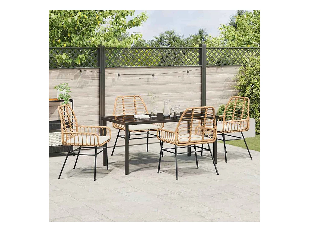 Ensemble de repas de jardin 5 pièces avec coussins marron en rotin poly