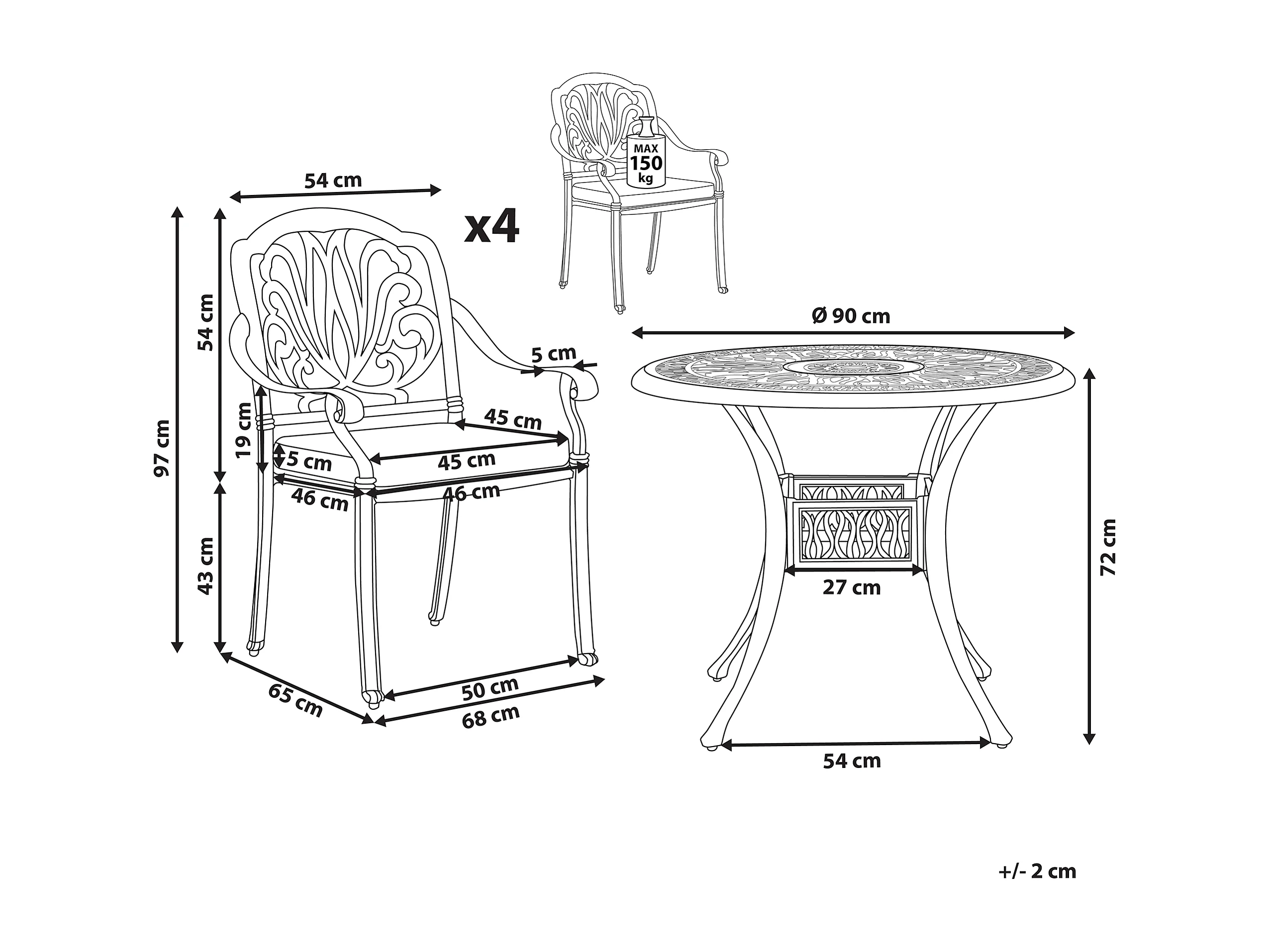 Salle à manger de jardin 4 places ANCONA avec coussins Métal Marron foncé