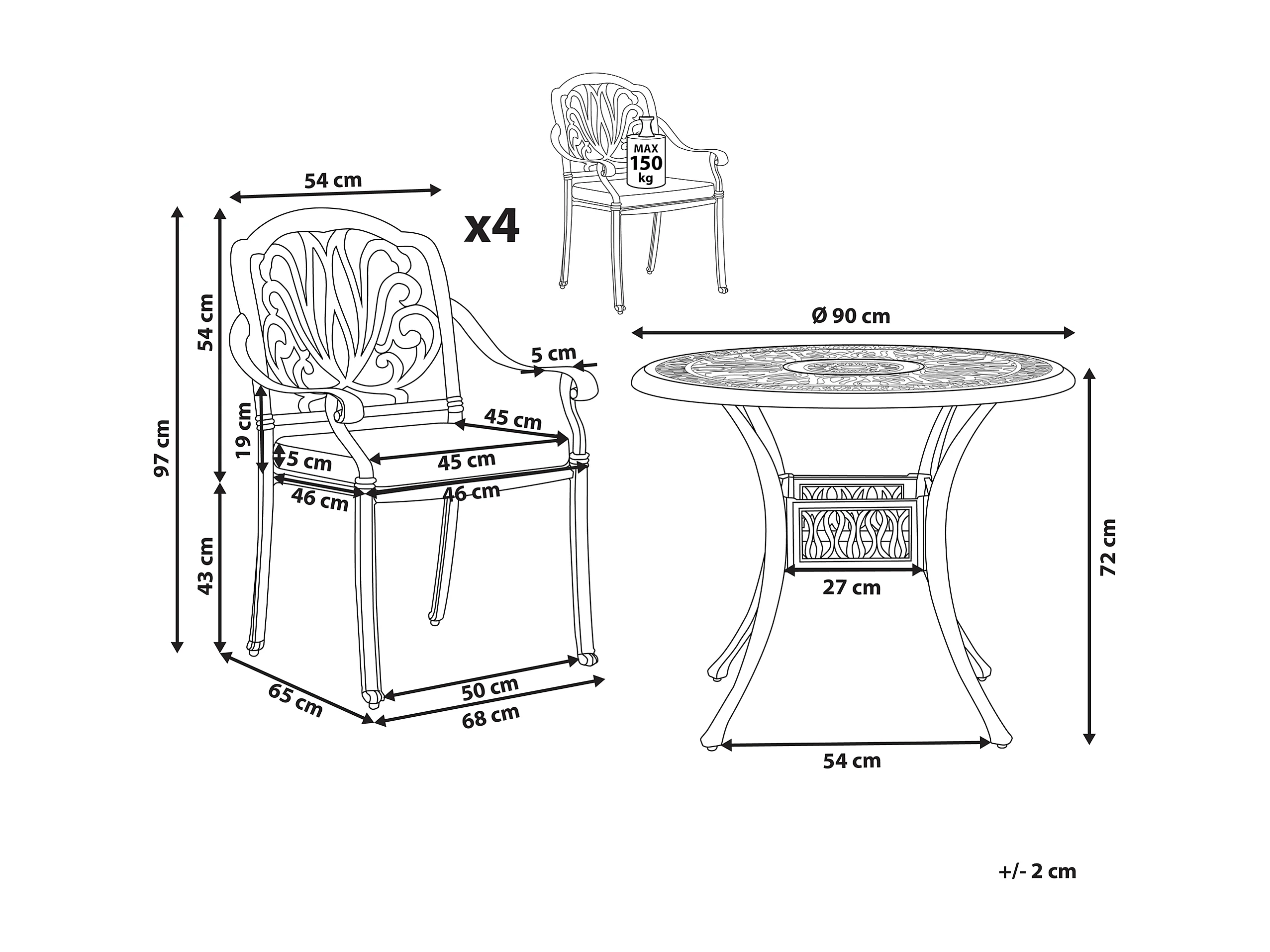 Salle à manger de jardin 4 places ANCONA avec coussins Métal Noir
