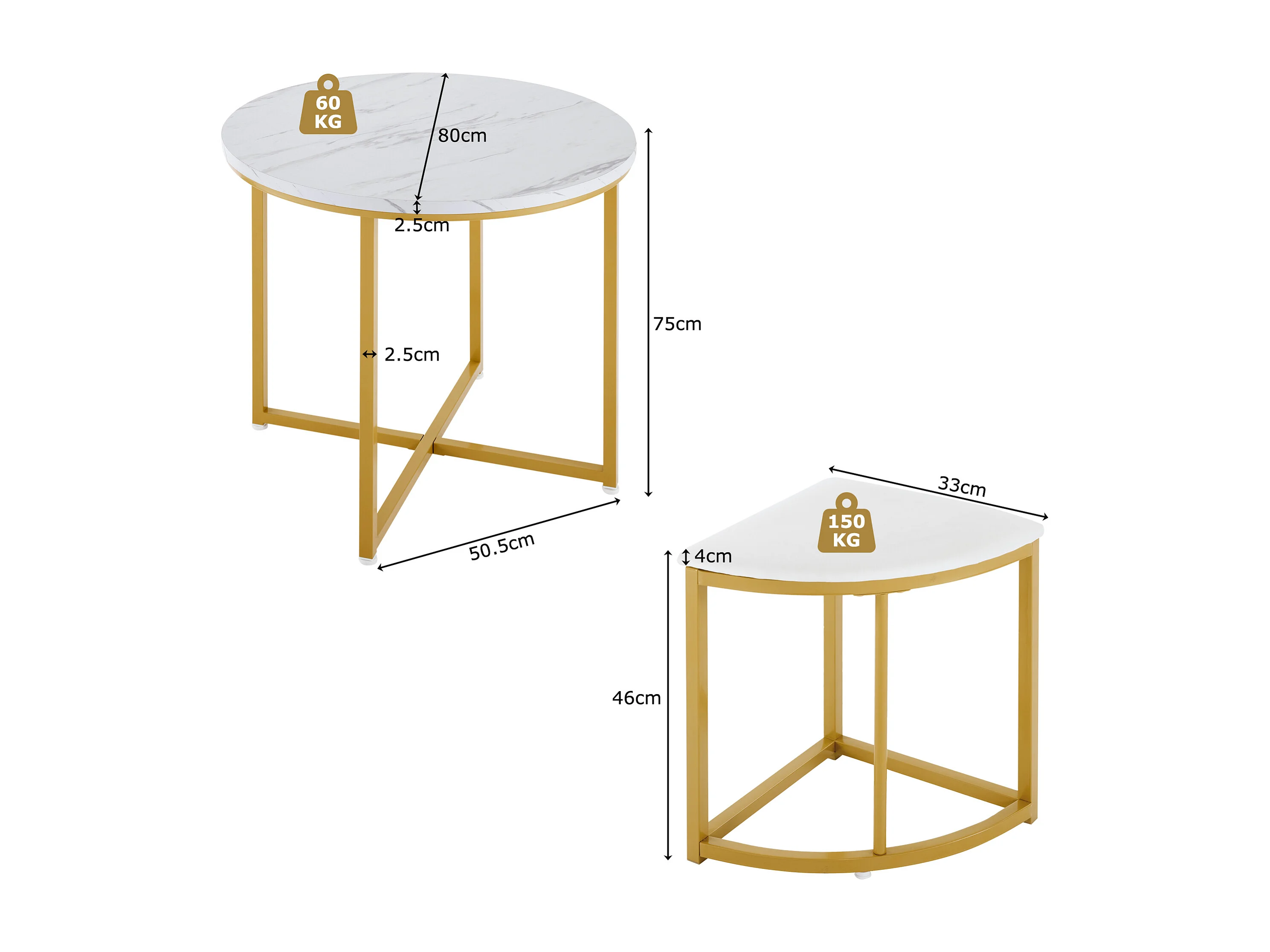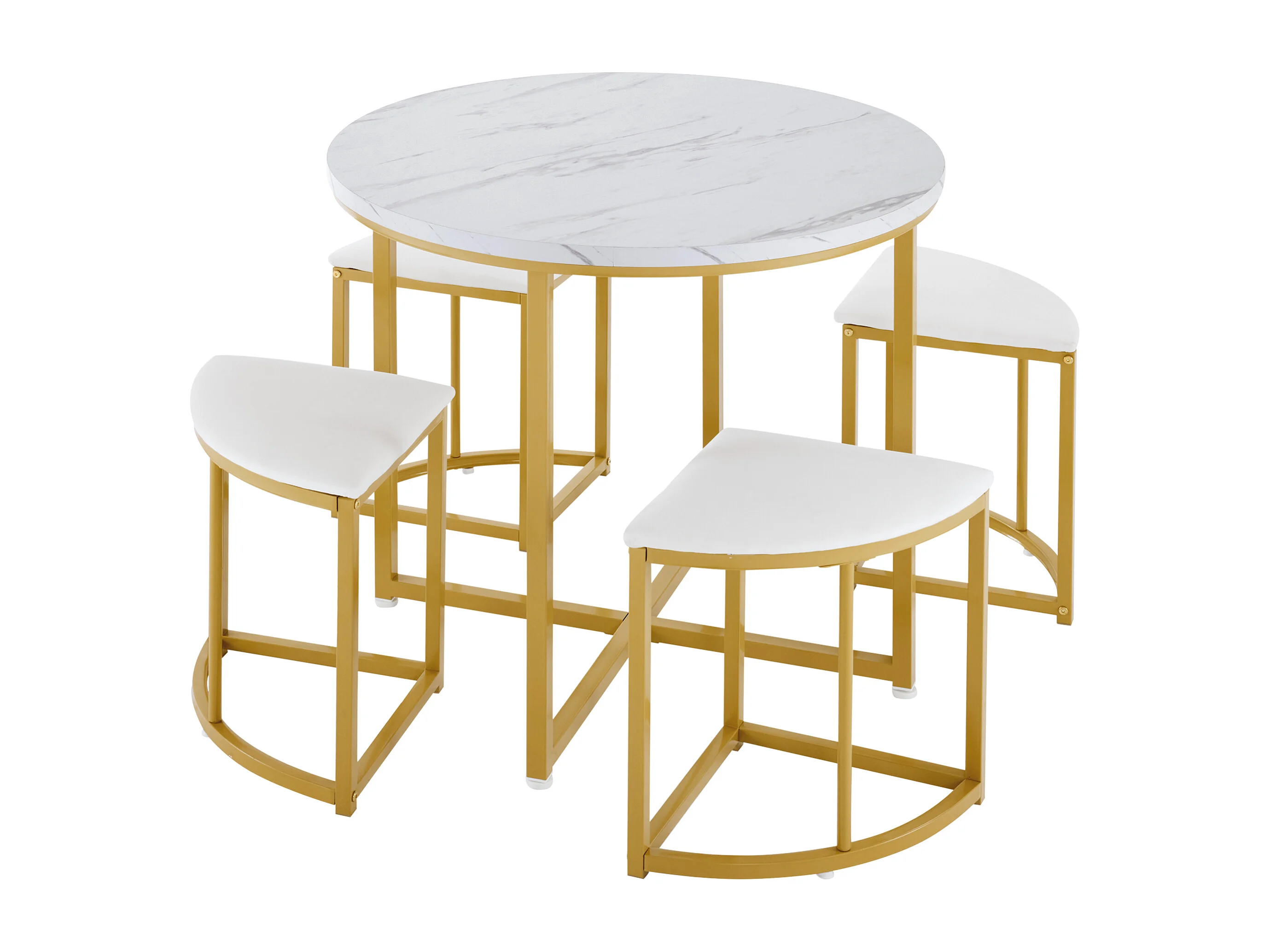 Ensemble de salle à manger avec 4 chaises, table ronde MDF avec cadre en métal doré, chaises en velours, moderne et luxueux, blanc (80x80x75 cm)
