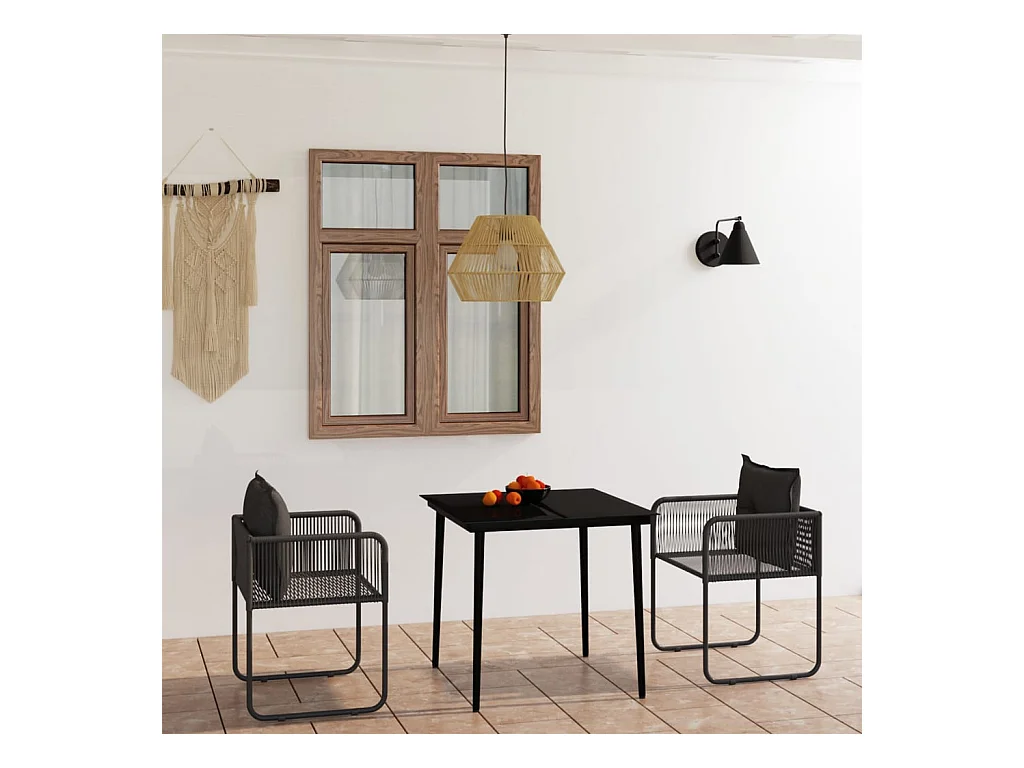 Salle à manger de jardin avec coussins 3 pcs Noir BE57396