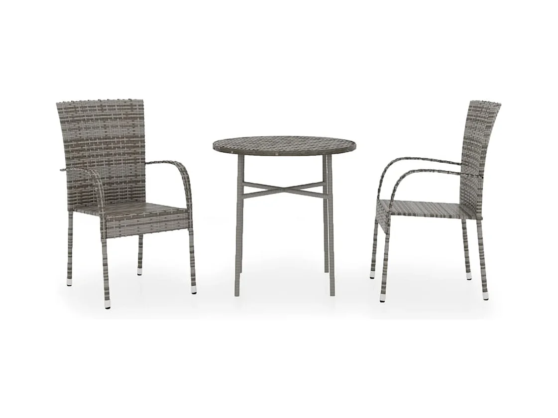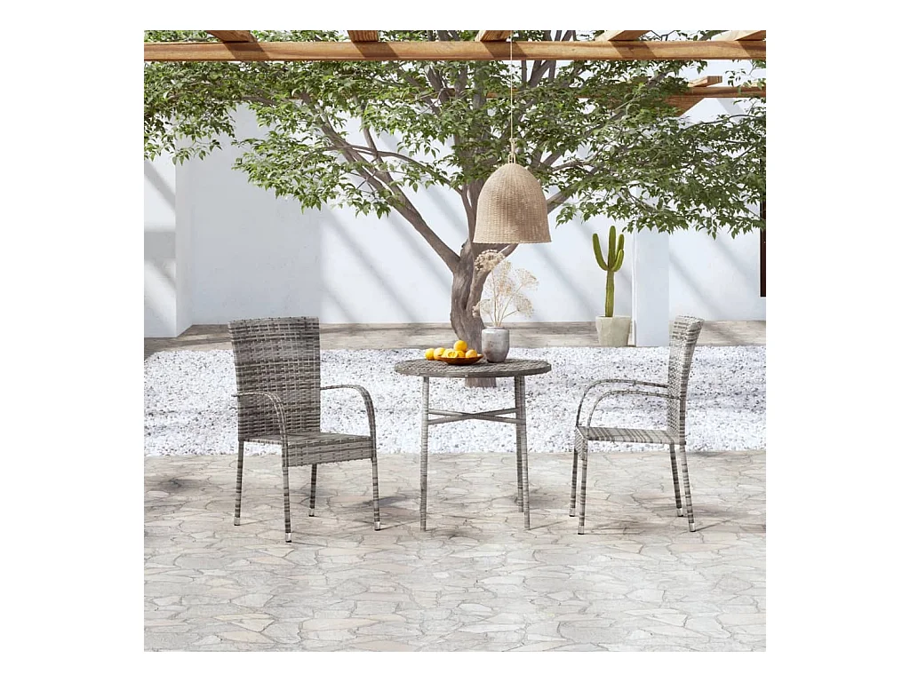 Ensemble de salle à manger de jardin 3 pcs Résine tressée Gris BE16379