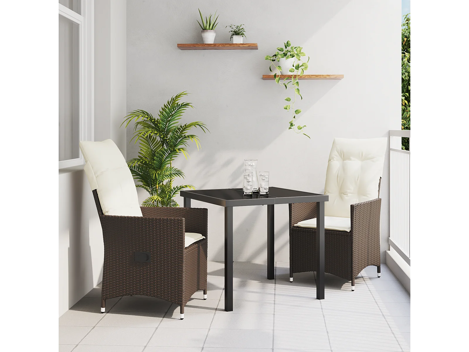 Ensemble de Salle à Manger de Jardin 3 pièces avec Coussin Marron Poly Rattan