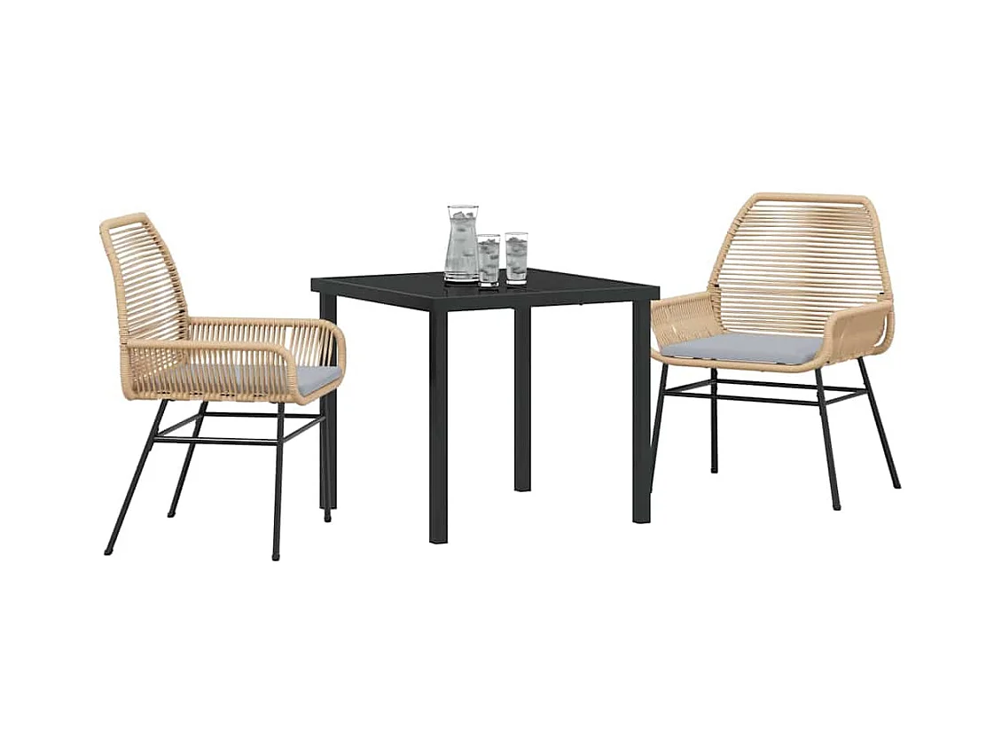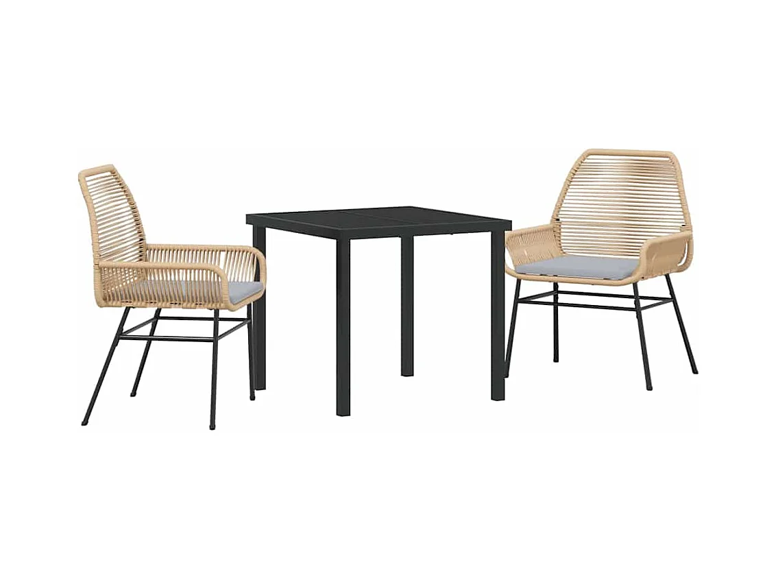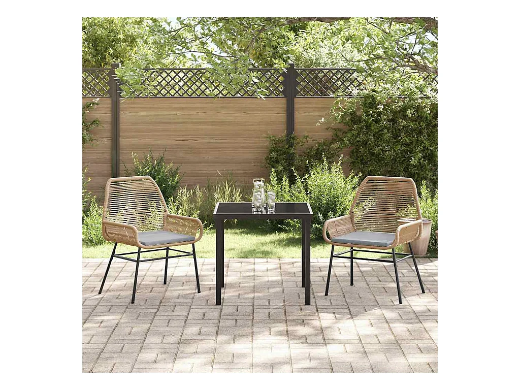 Ensemble de salle à manger de jardin 3 pièces avec coussins en rotin poly marron