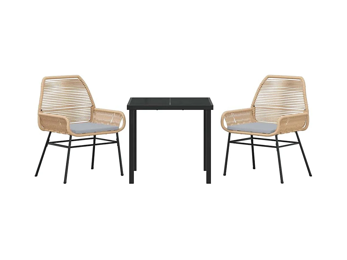 Ensemble de salle à manger de jardin 3 pièces en poly rattan marron