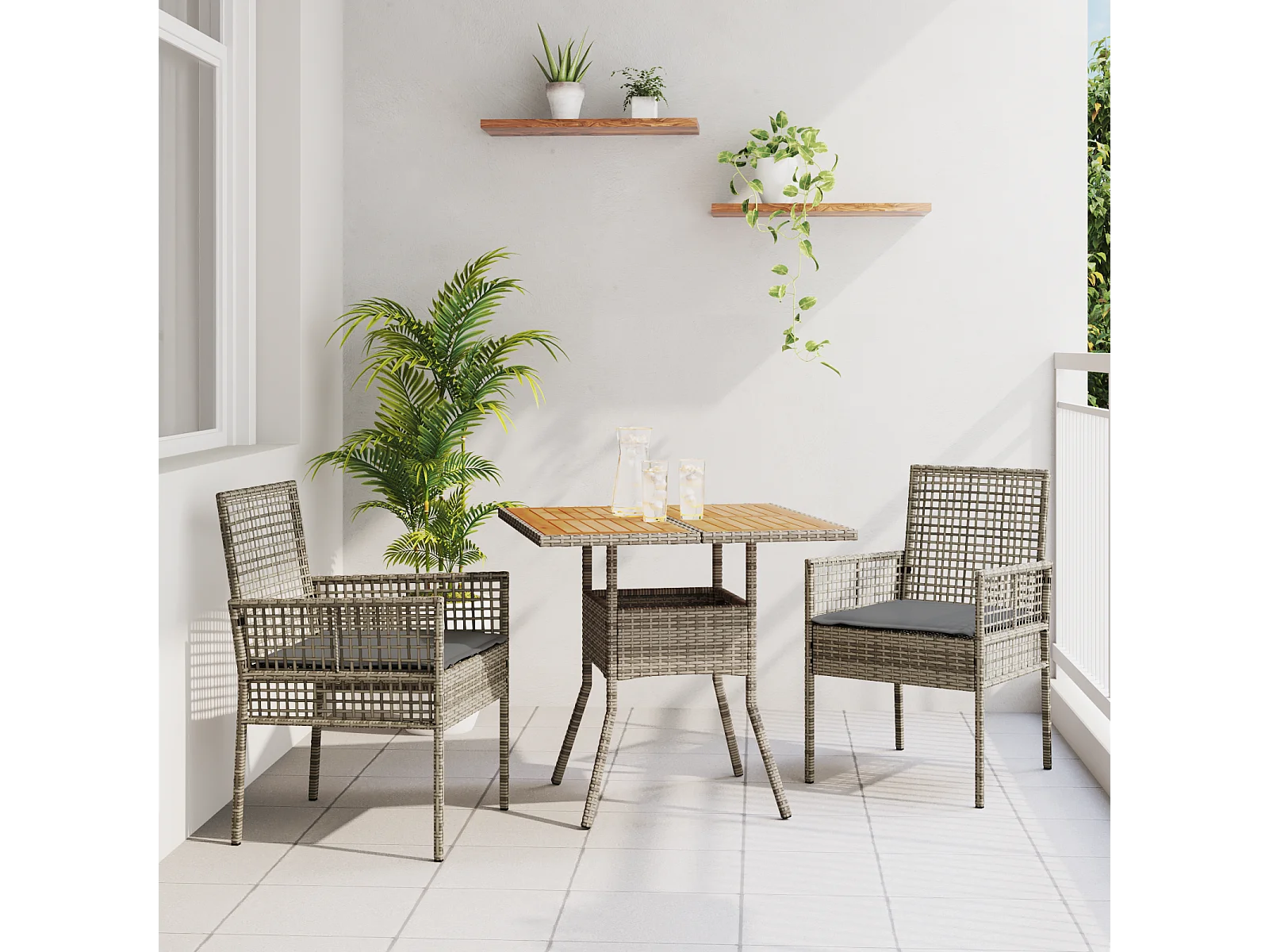 Ensemble de Salle à Manger de Jardin 3 Pièces avec Coussins Gris Poly Rattan