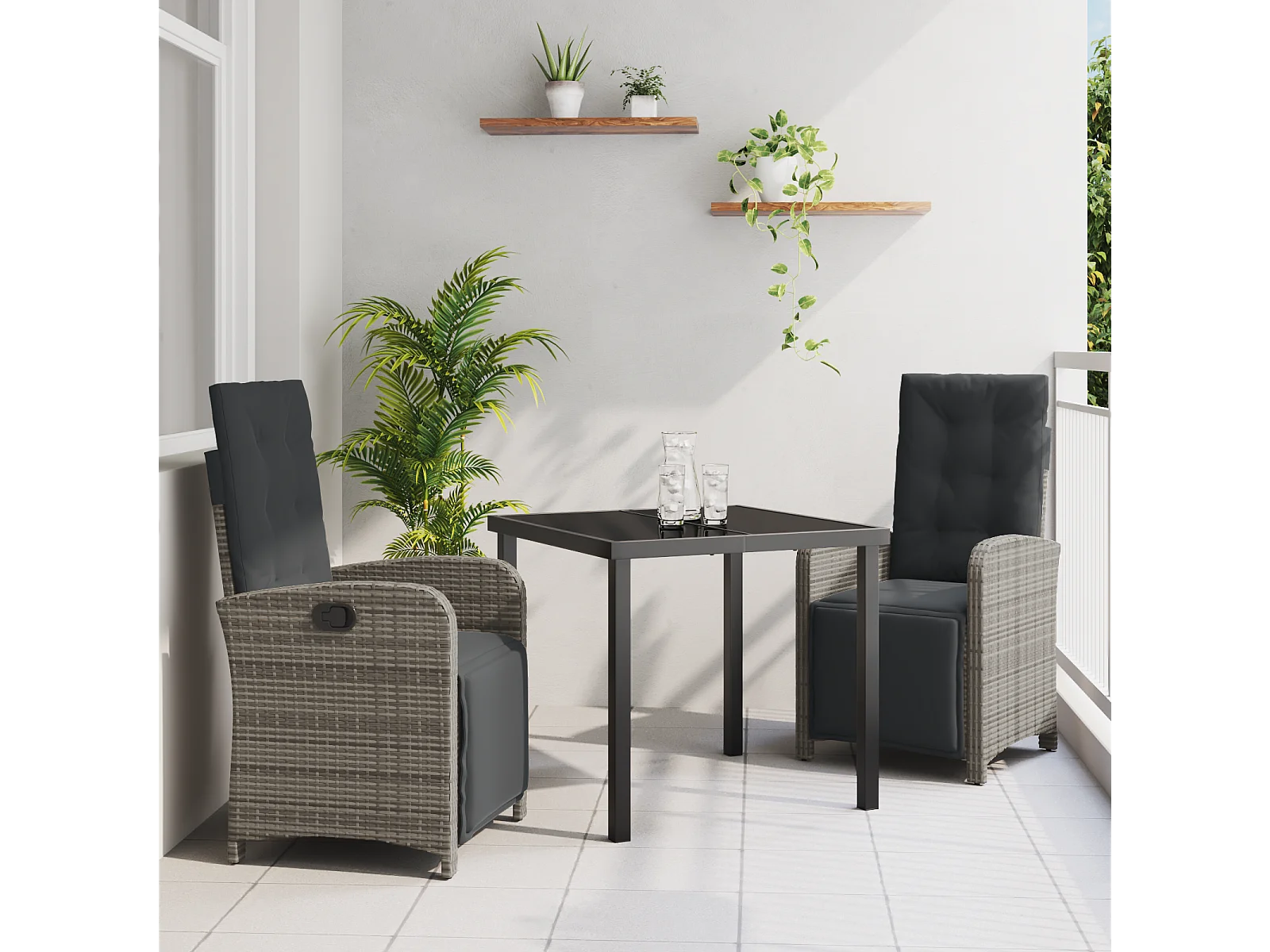 Ensemble de salle à manger de jardin 3 pièces avec coussins gris polyrotin