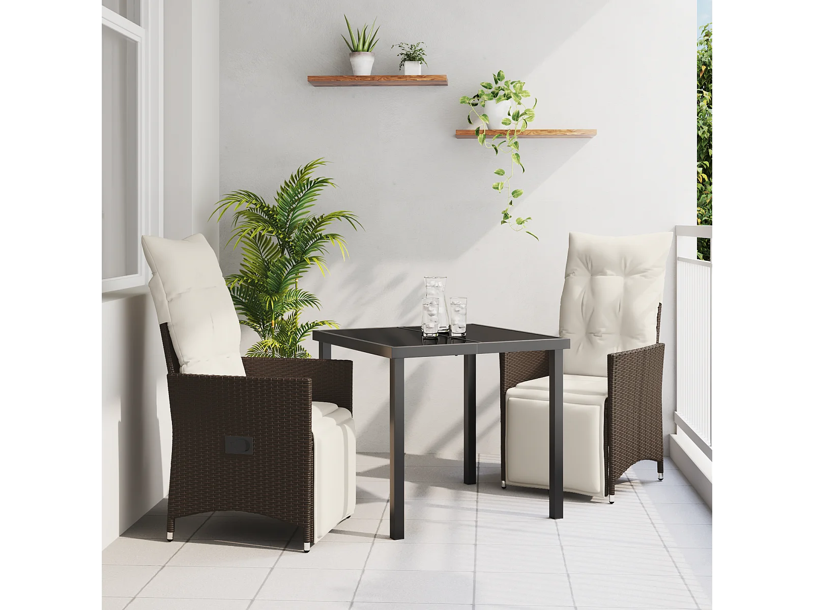 Ensemble de salle à manger de jardin 3 pièces avec coussins Marron Poly Rattan