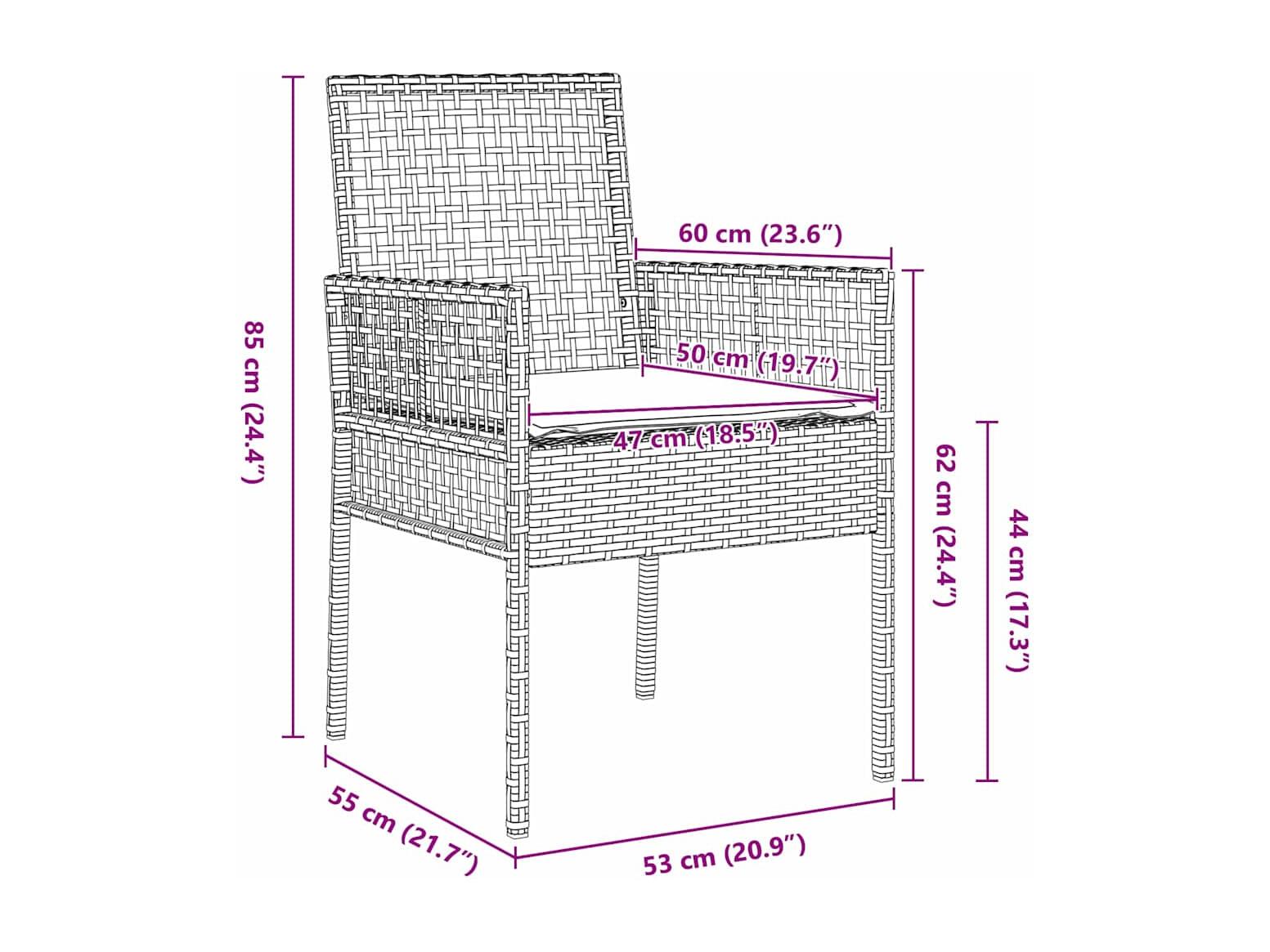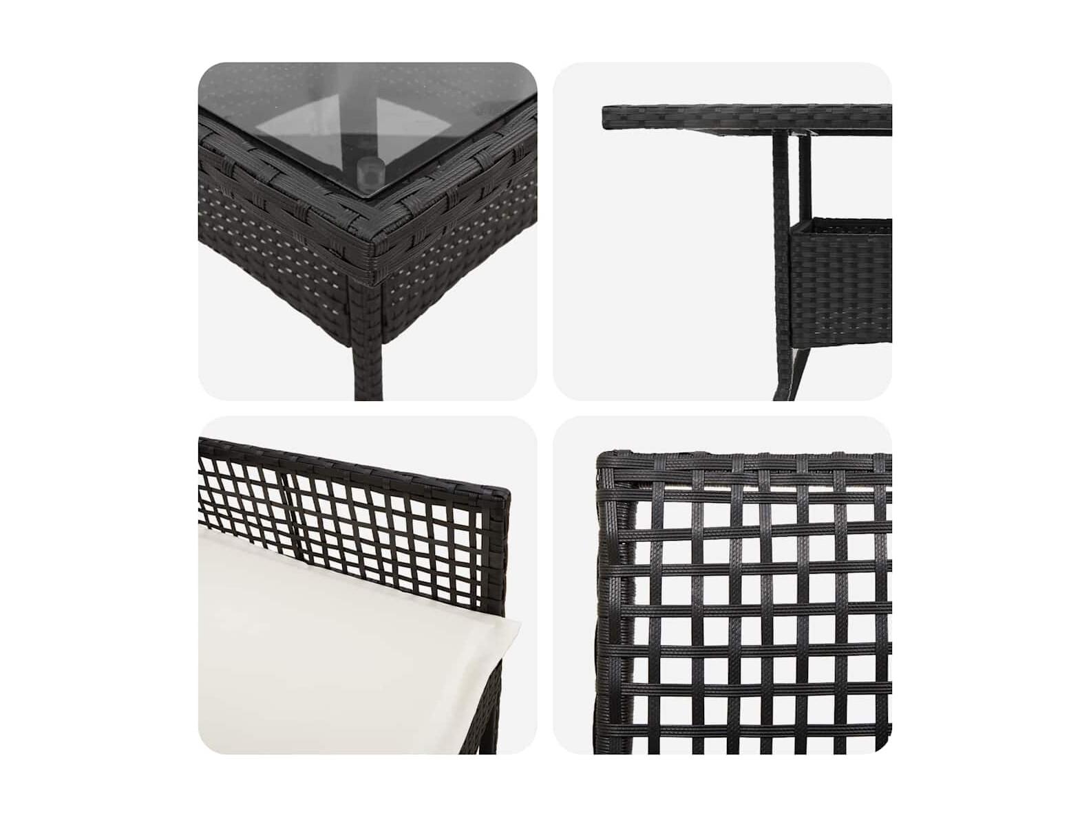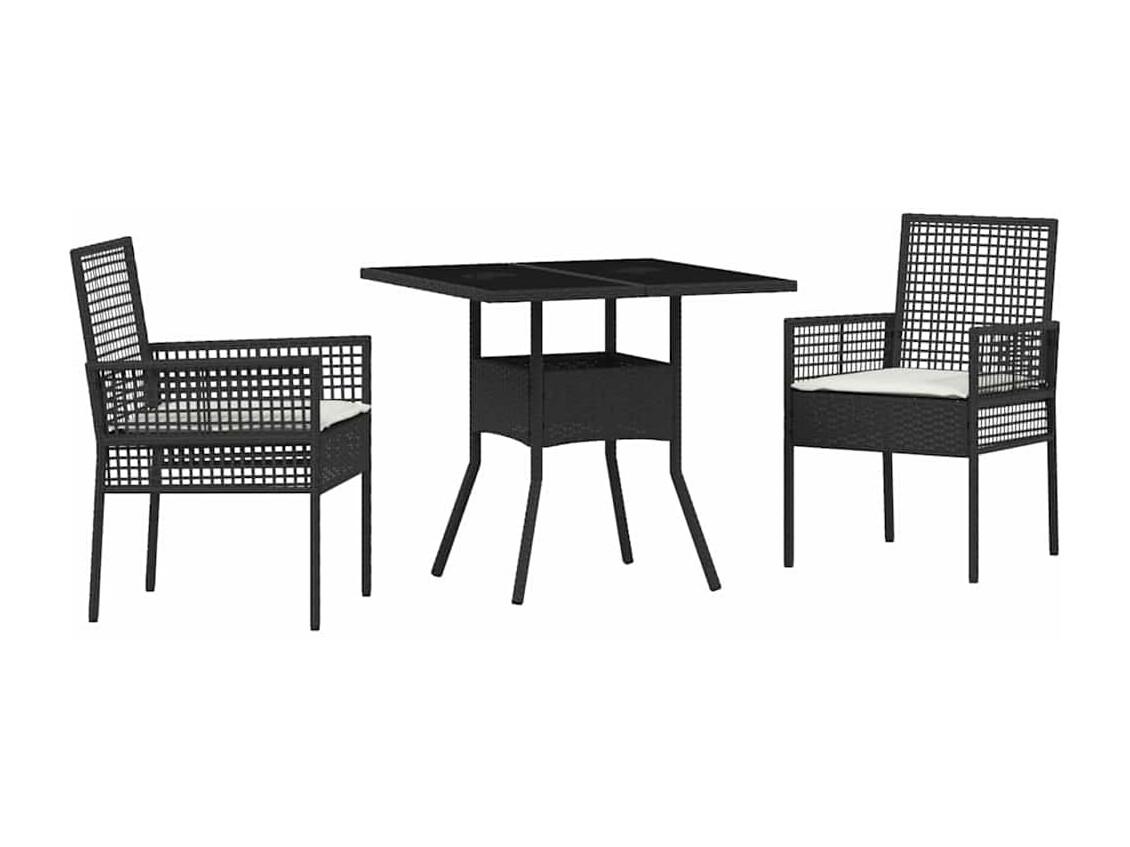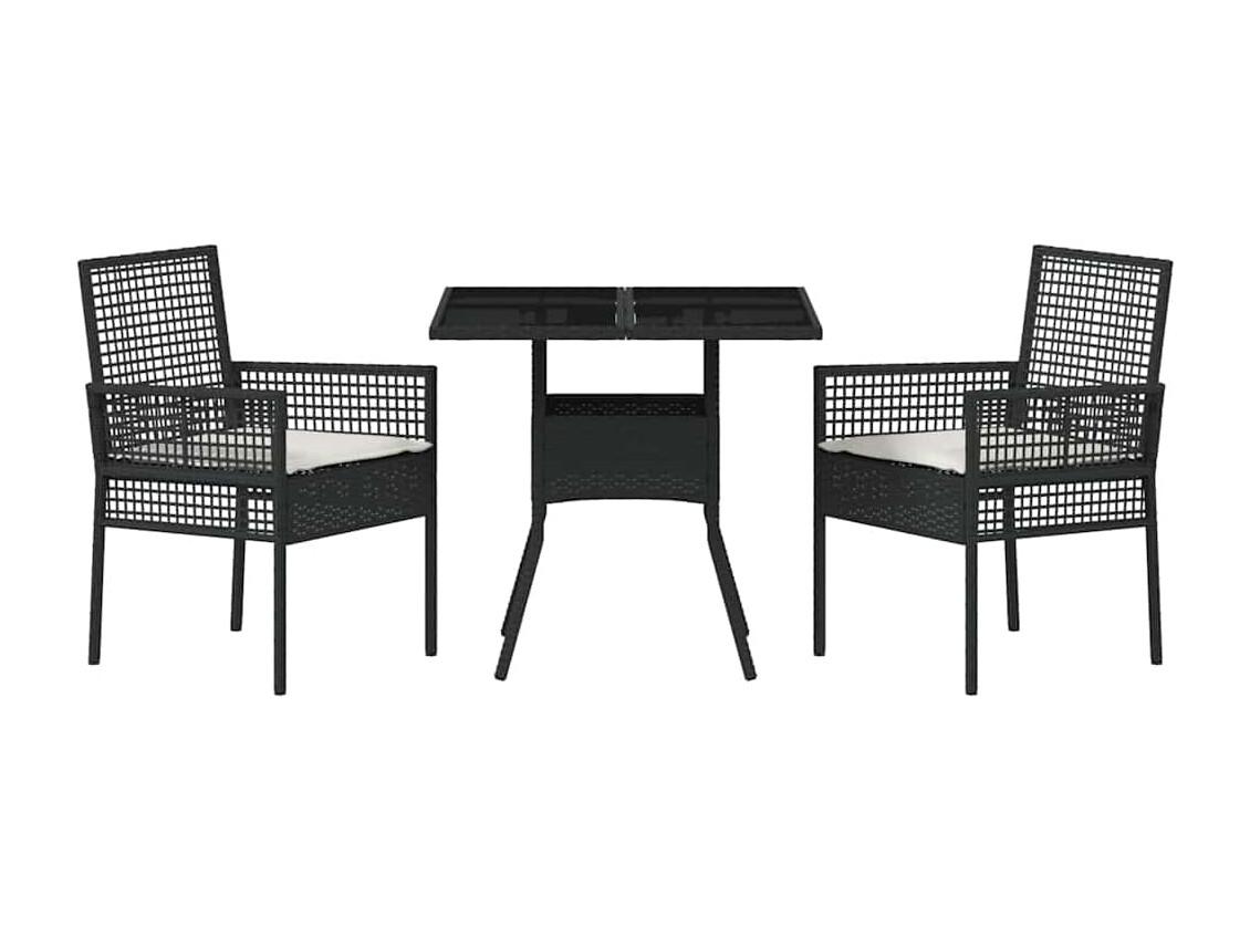 Set de salle à manger de jardin 3 pièces avec coussins rattan poly noir