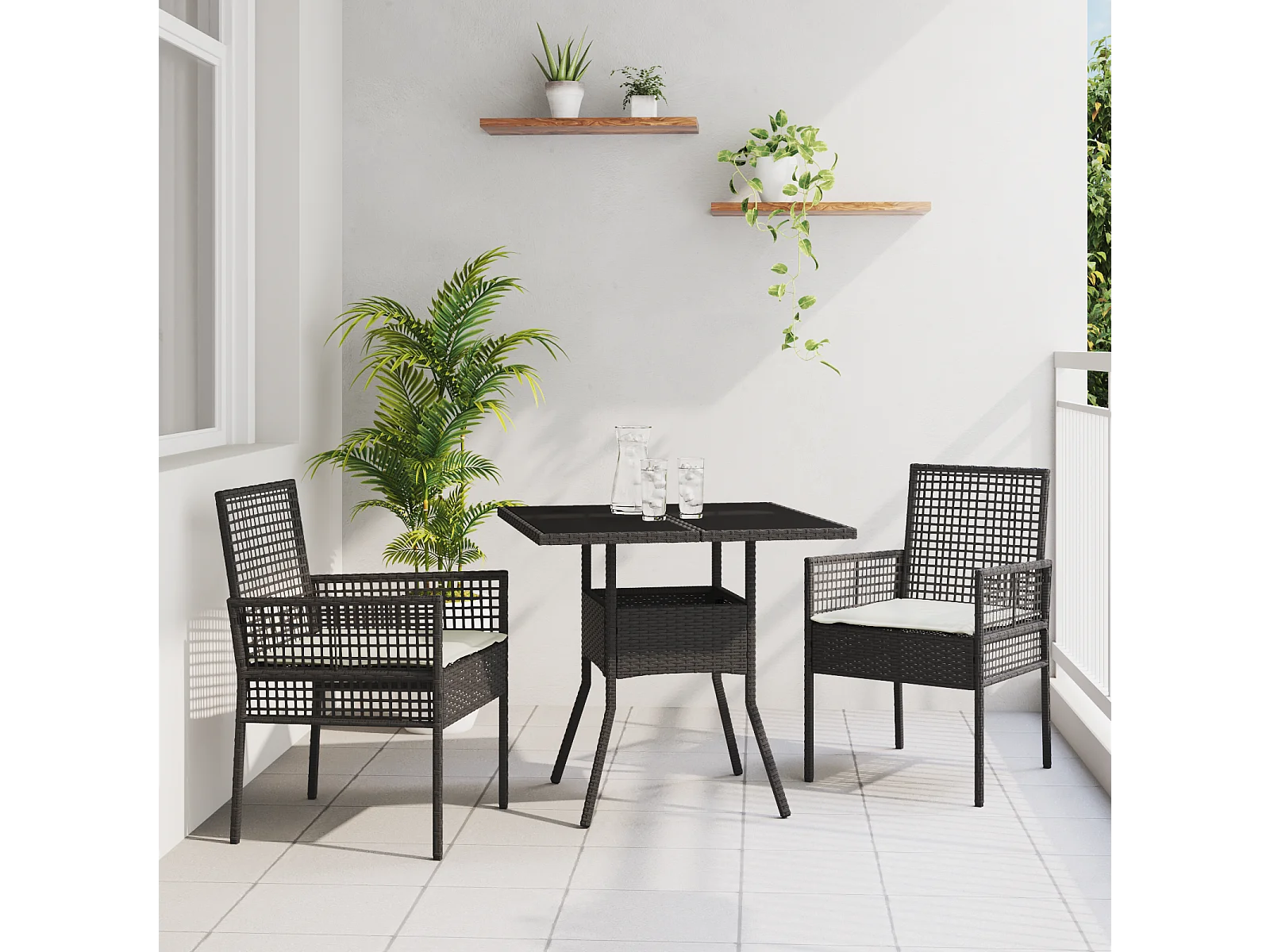 Ensemble de salle à manger de jardin 3 pièces en poly rattan noir