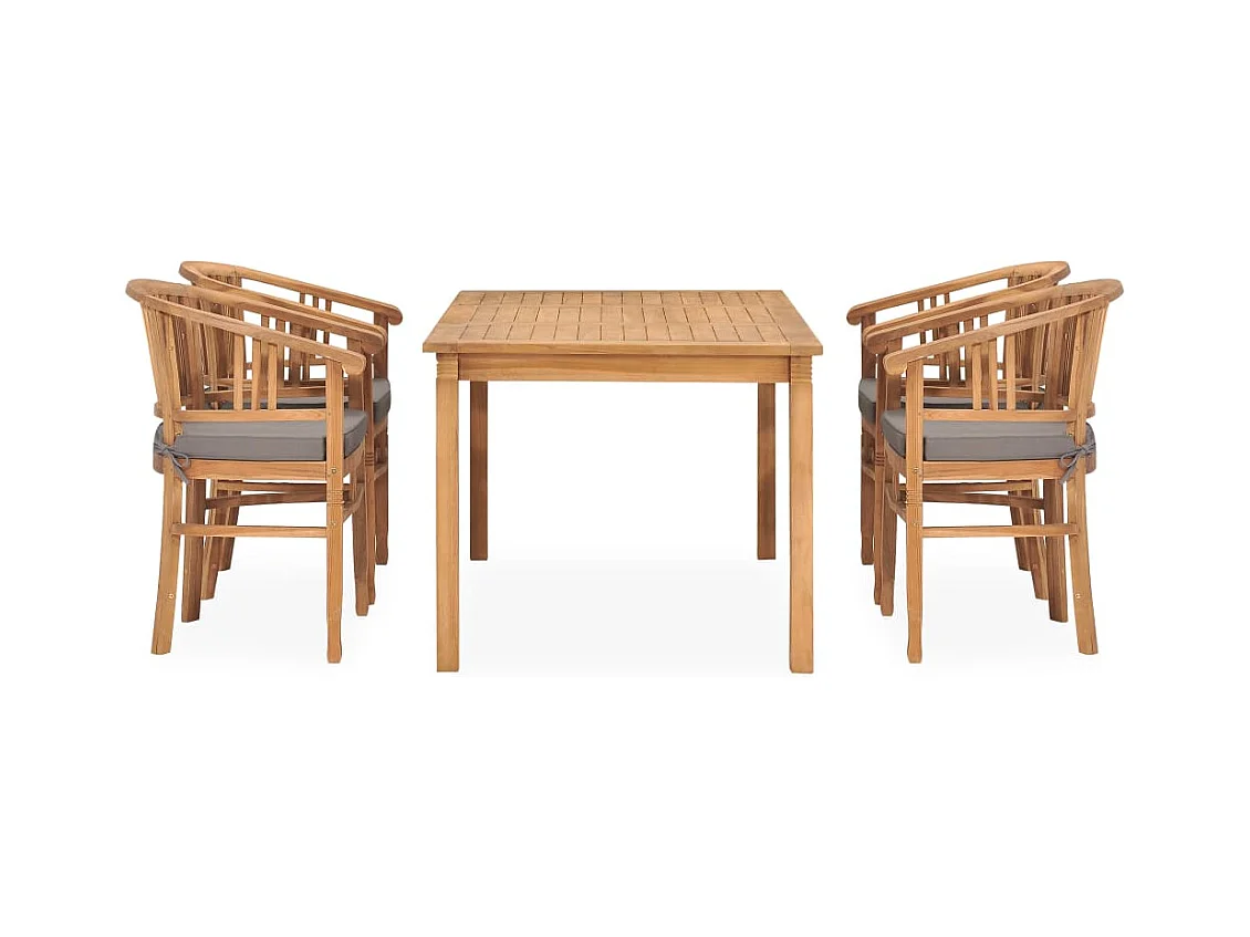 Ensemble de salle à manger de jardin 5 pcs avec coussins Teck BE60354
