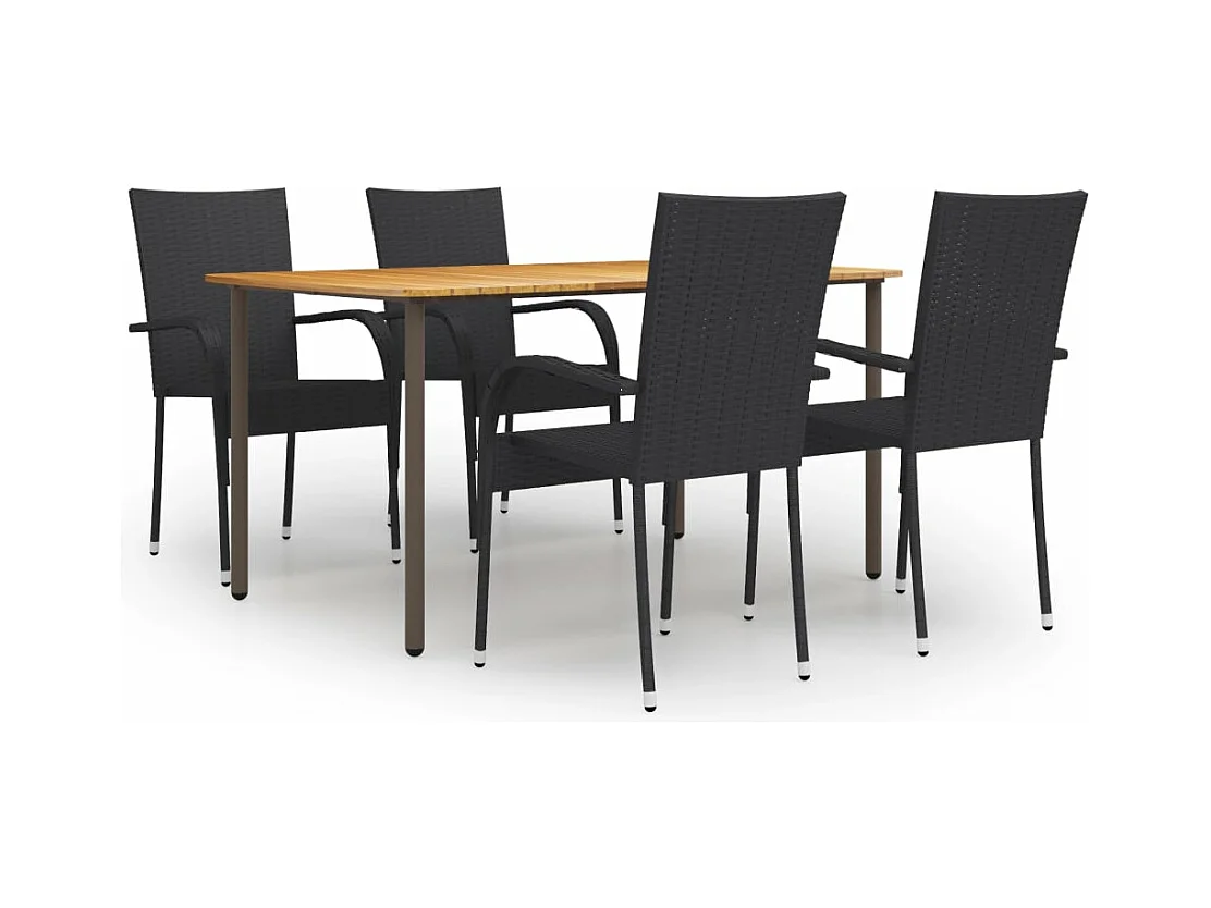 Ensemble à dîner de jardin 5 pcs Noir Résine tressée et acacia BE85514