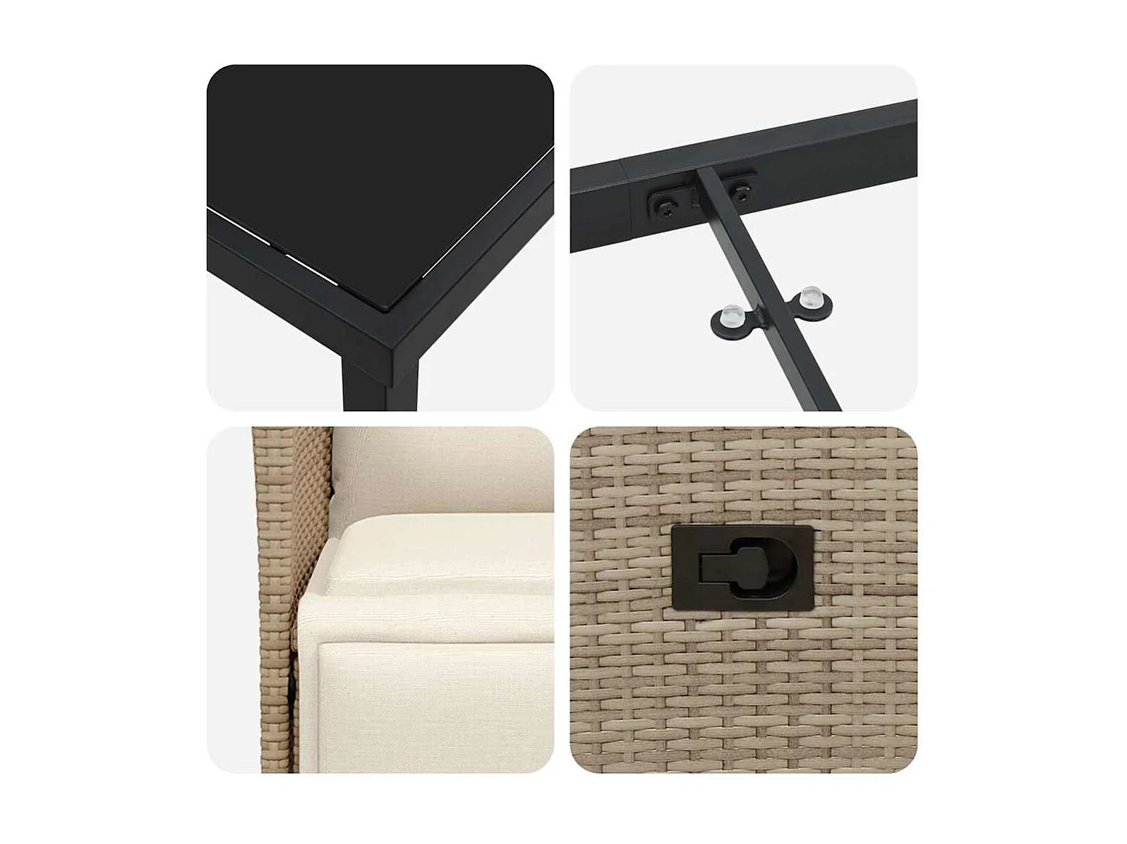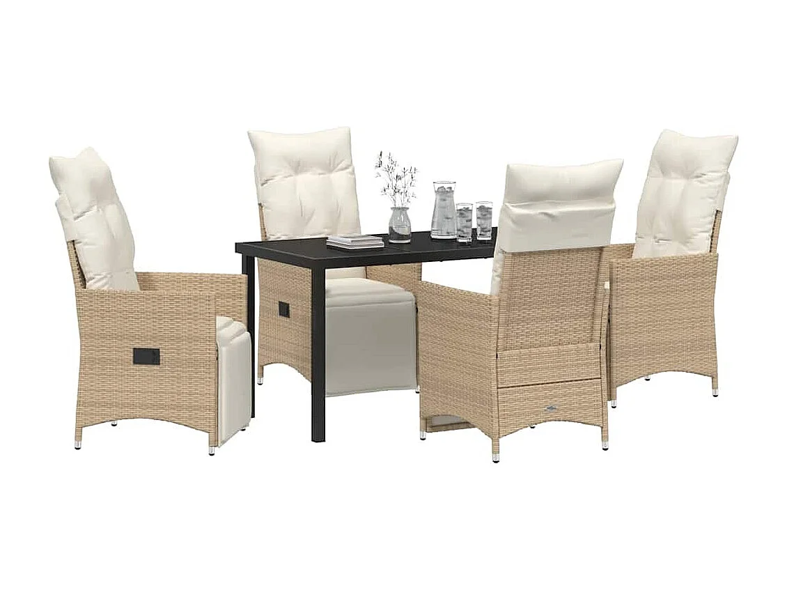 Ensemble repas jardin 5 pièces avec coussins beige en poly rattan