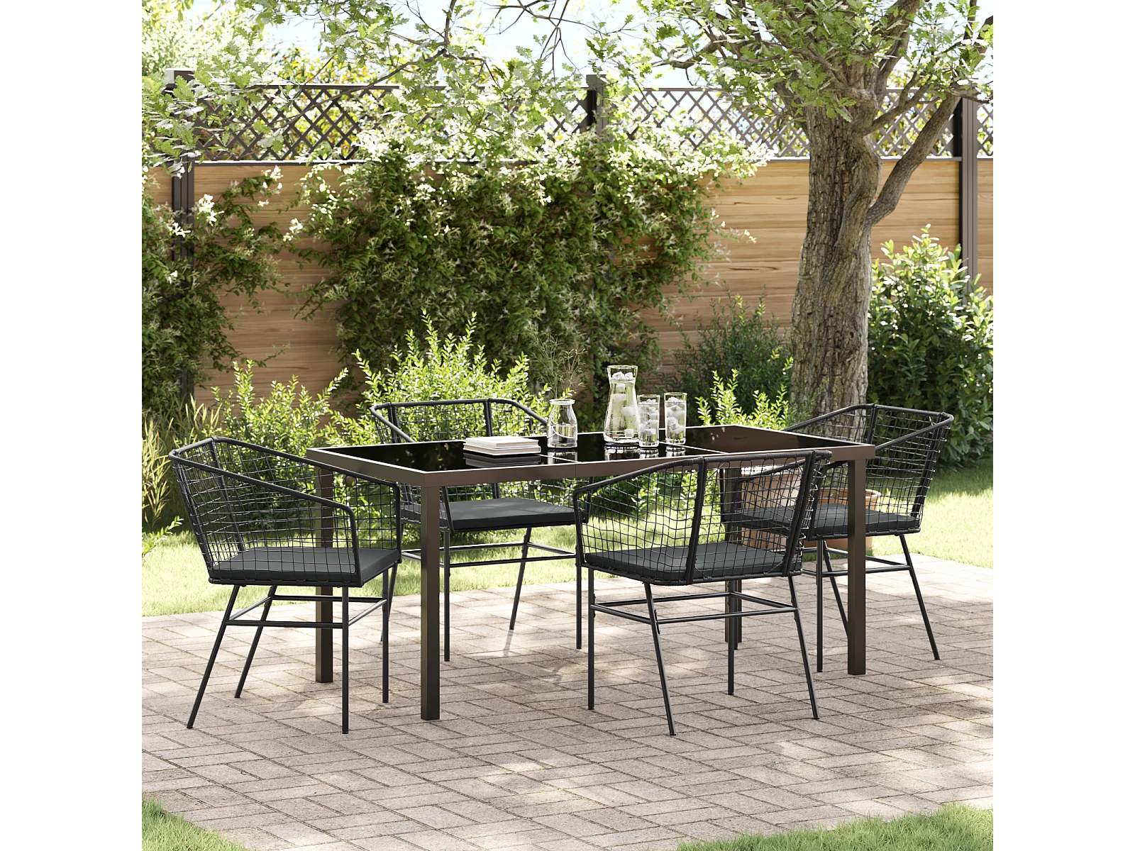 Ensemble de salle à manger de jardin 5 pièces avec coussins en poly rotin noir