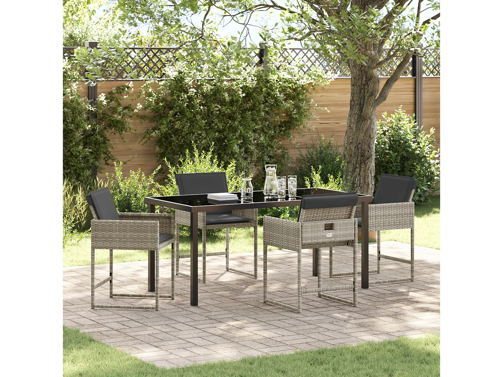 Ensemble de salle à manger de jardin 5 pièces avec coussins gris clair en rattan synthétique