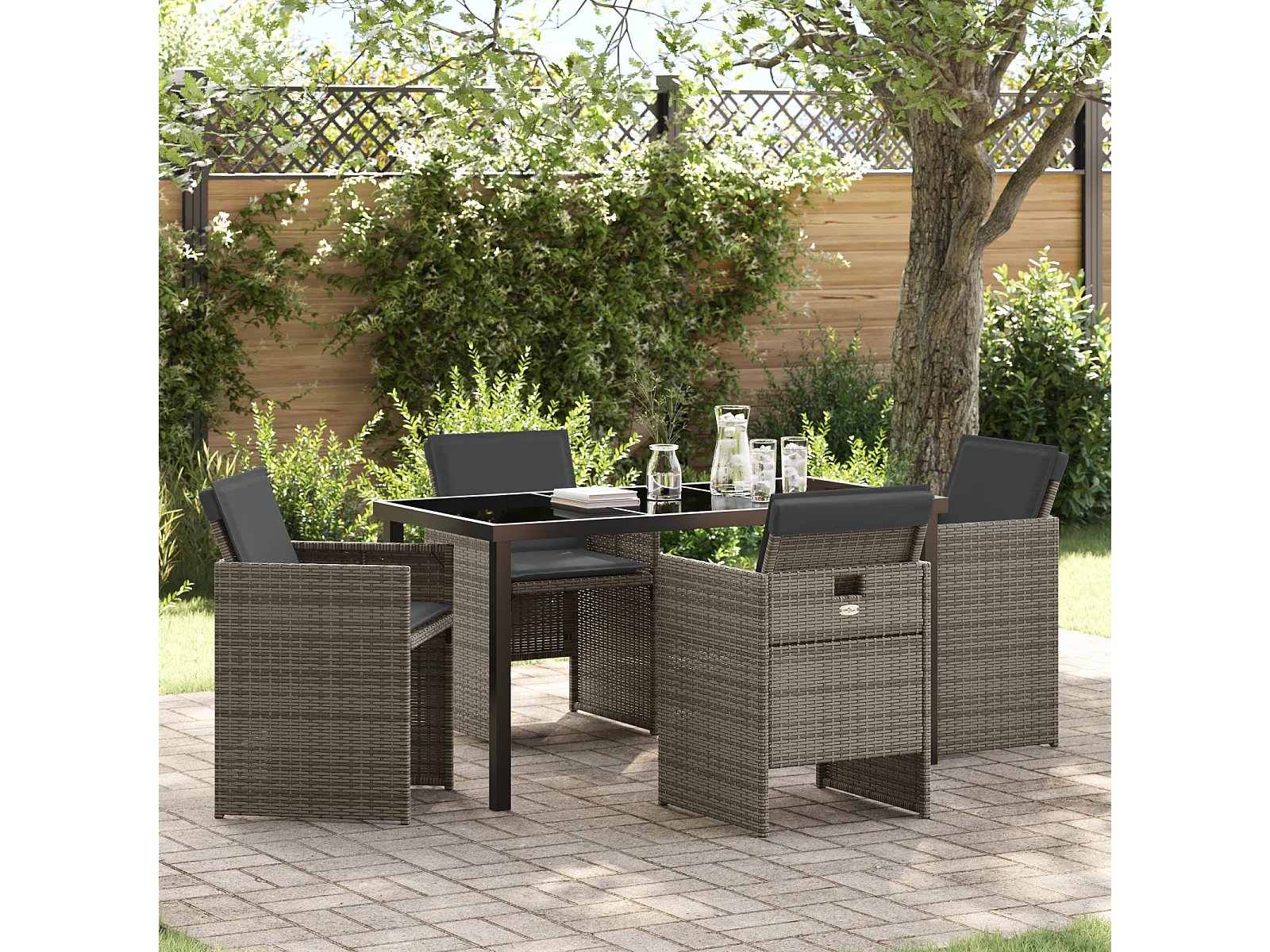 Ensemble de salle à manger de jardin 5 pièces avec coussins gris en poly rotin