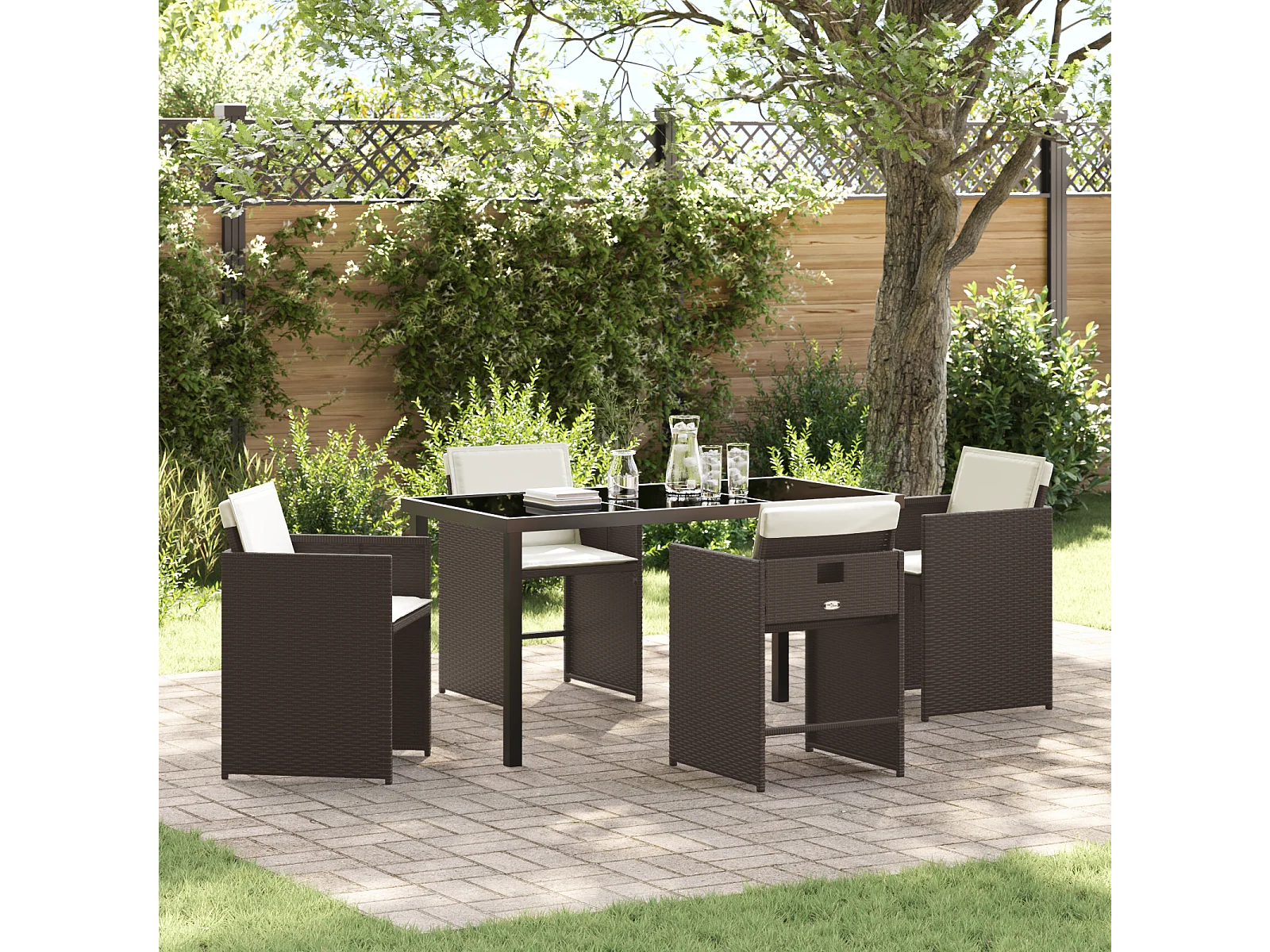 Ensemble de Salle à Manger de Jardin 5 Pièces avec Coussins Marron Poly Rattan