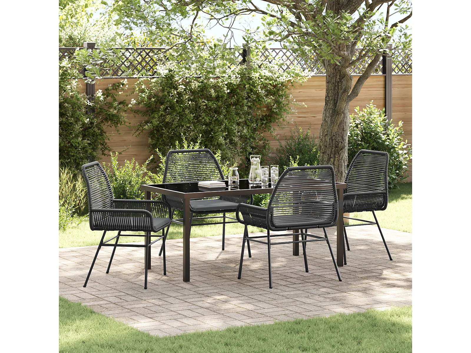Ensemble de Salle à Manger de Jardin 5 Pièces avec Coussins Noir Poly Rotin