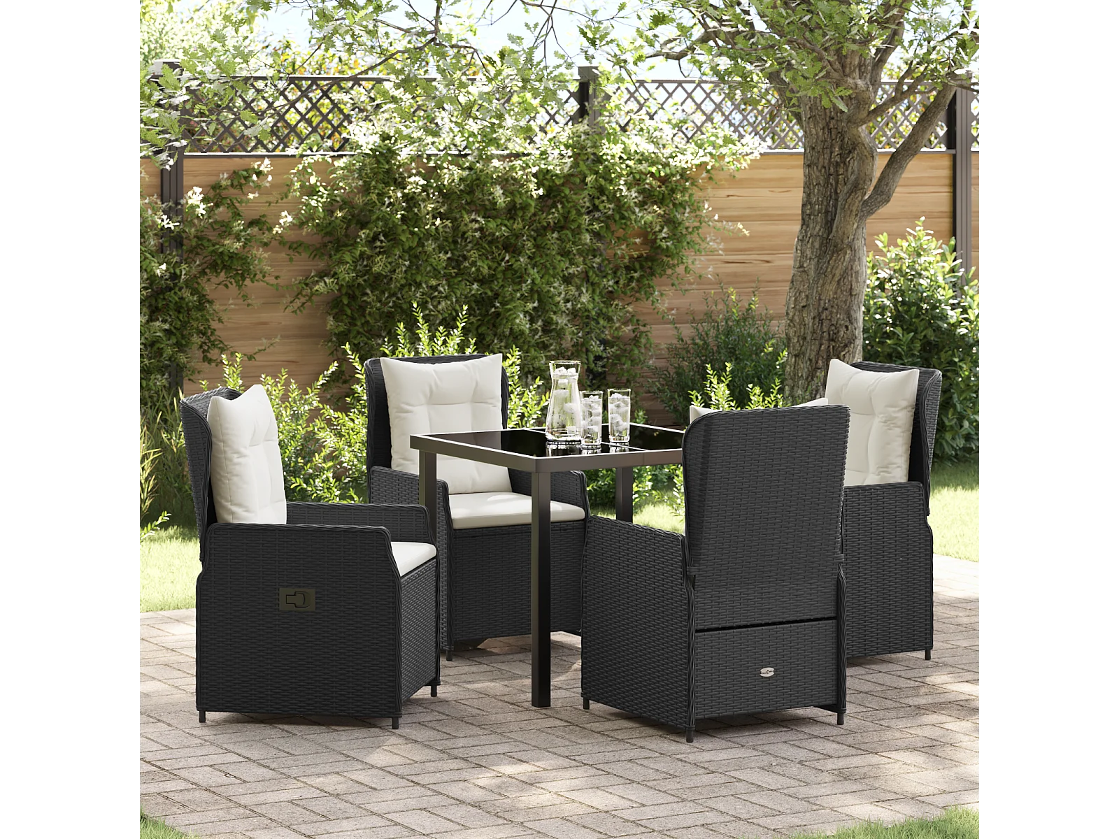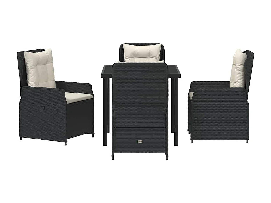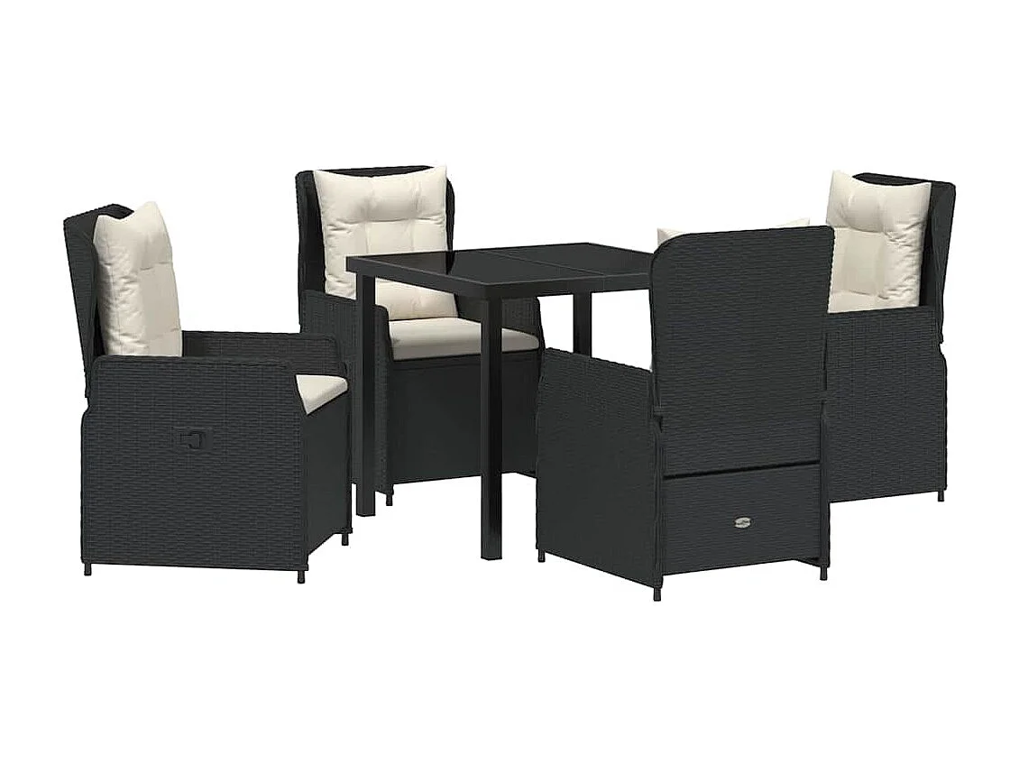 Ensemble de salle à manger de jardin 5 pièces en poly rotin noir
