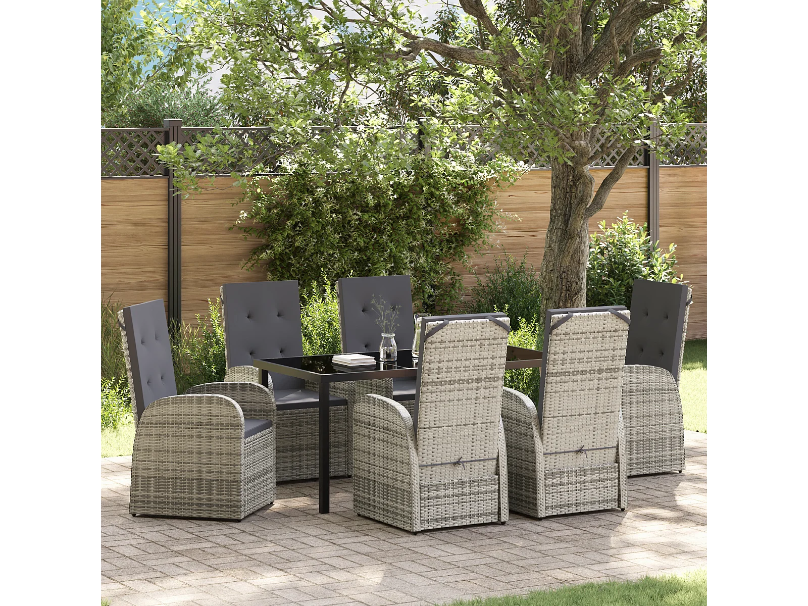Ensemble de salle à manger de jardin 7 pièces avec coussins en poly rotin gris