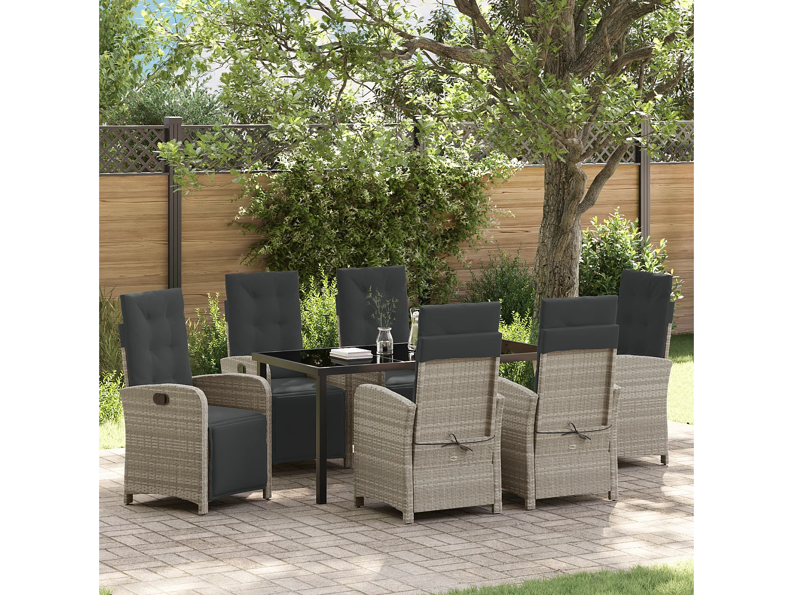Ensemble de salle à manger de jardin 7 pièces avec coussins en poly rotin gris clair