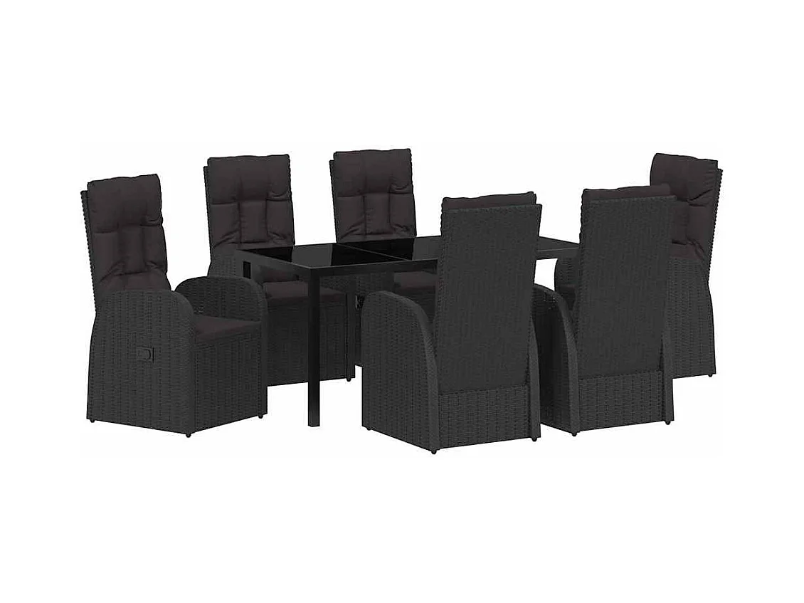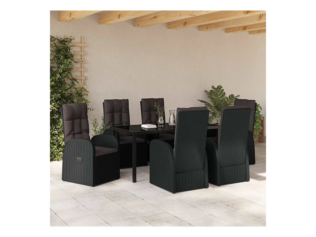 Ensemble de Salle à Manger de Jardin 7 Pièces avec Coussins - Rattan Poly Noir