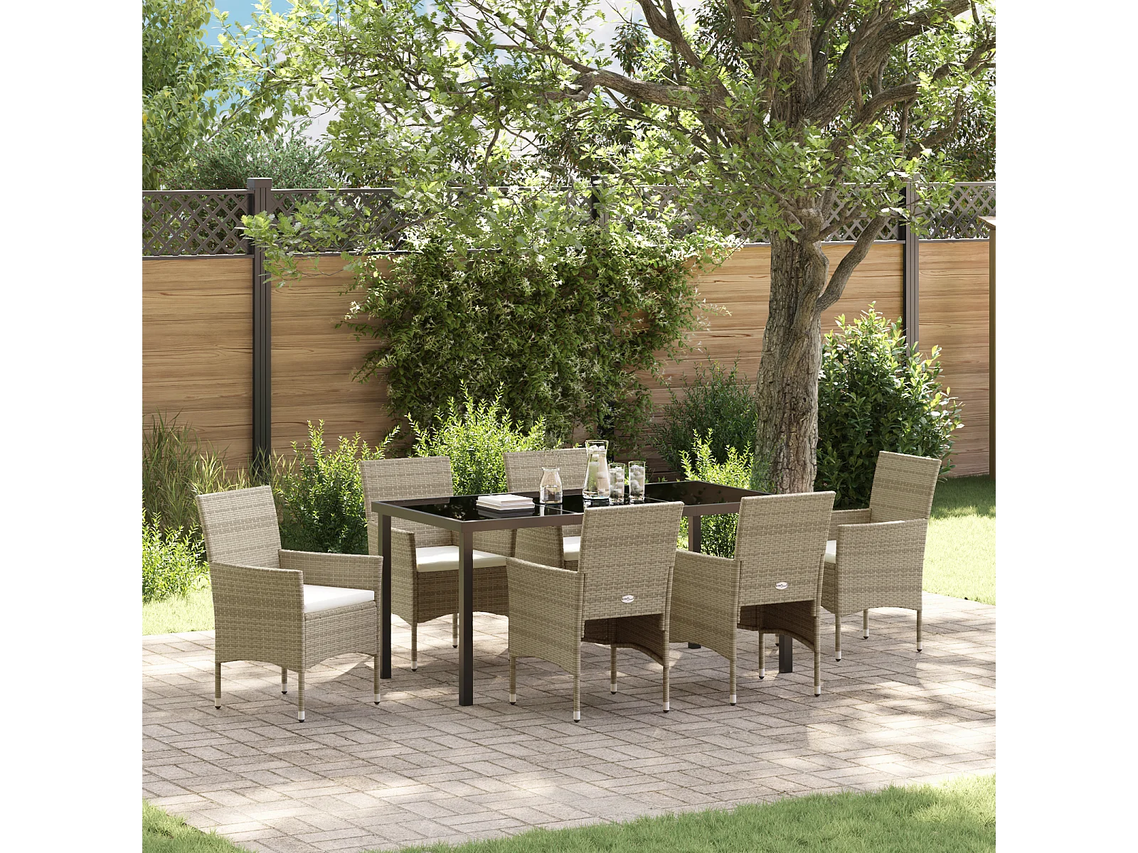 Ensemble de Salle à Manger de Jardin 7 Pièces Beige Rotin Synthétique