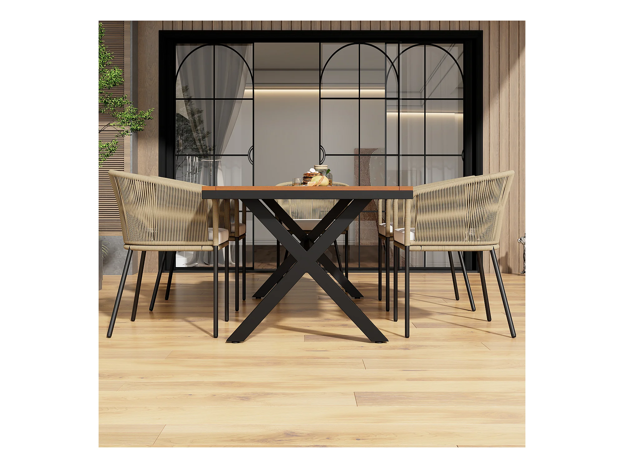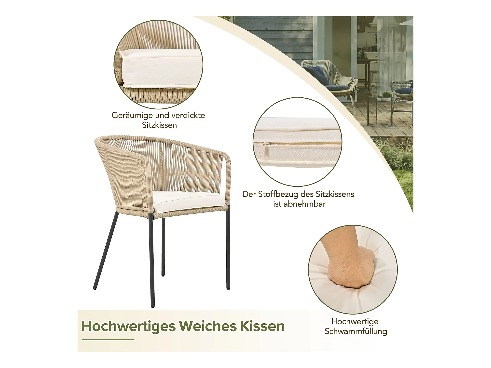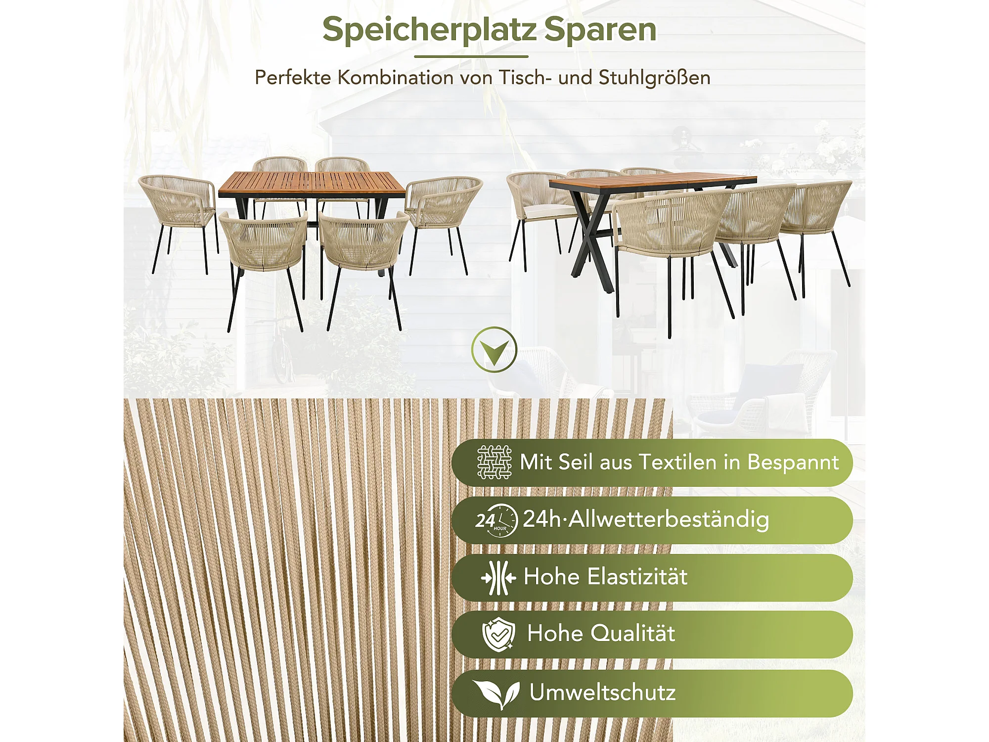 Ensemble de salle à manger de jardin (7 pièces), canapé en corde, table en acacia, 6 chaises avec coussins amovibles et lavables