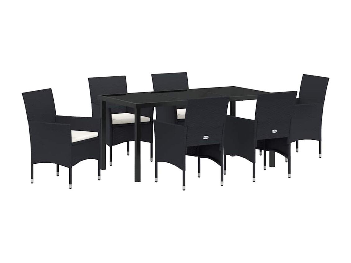 Ensemble de Salle à Manger de Jardin 7 Pièces avec Coussins - Rattan Poly Noir