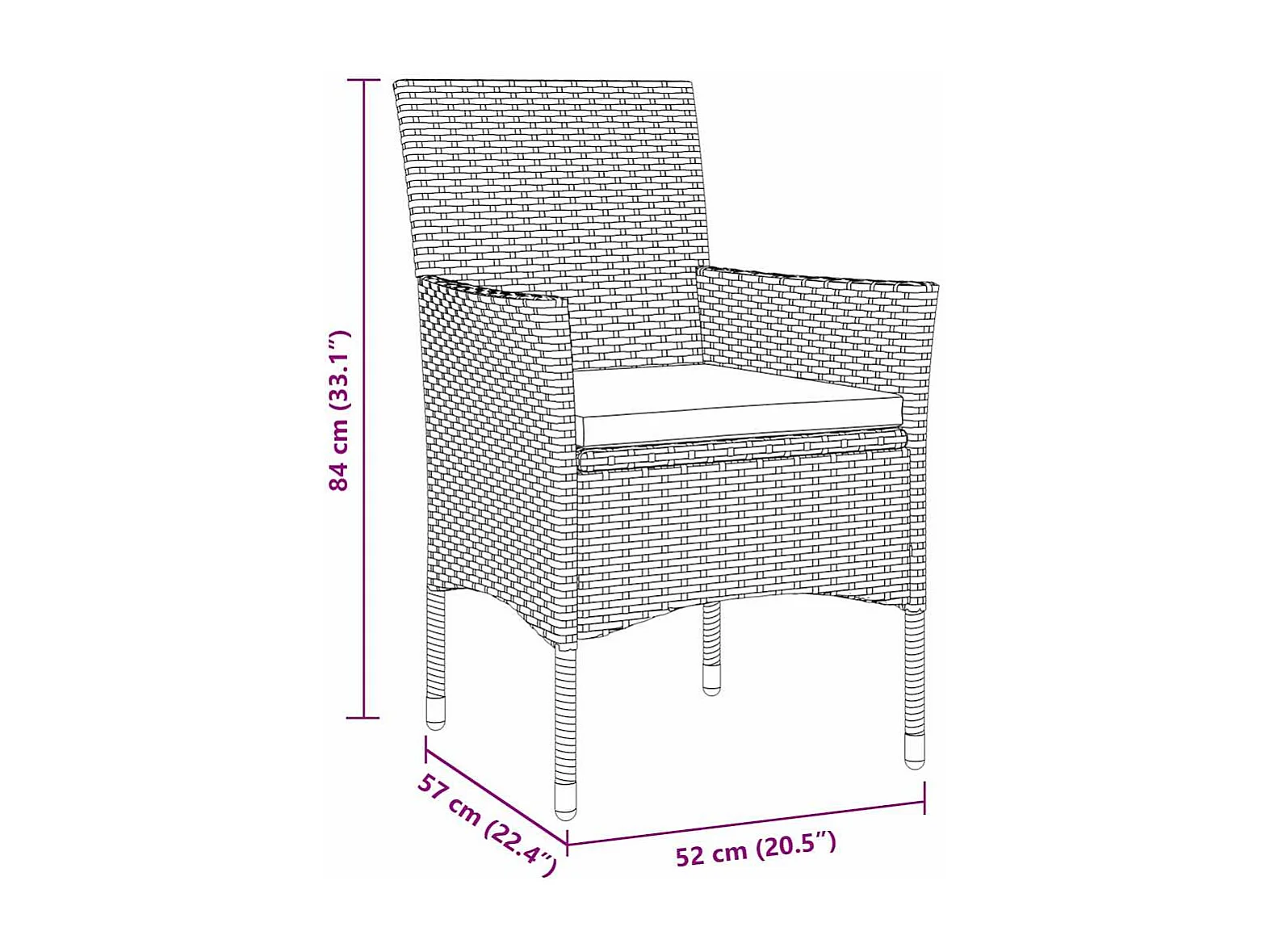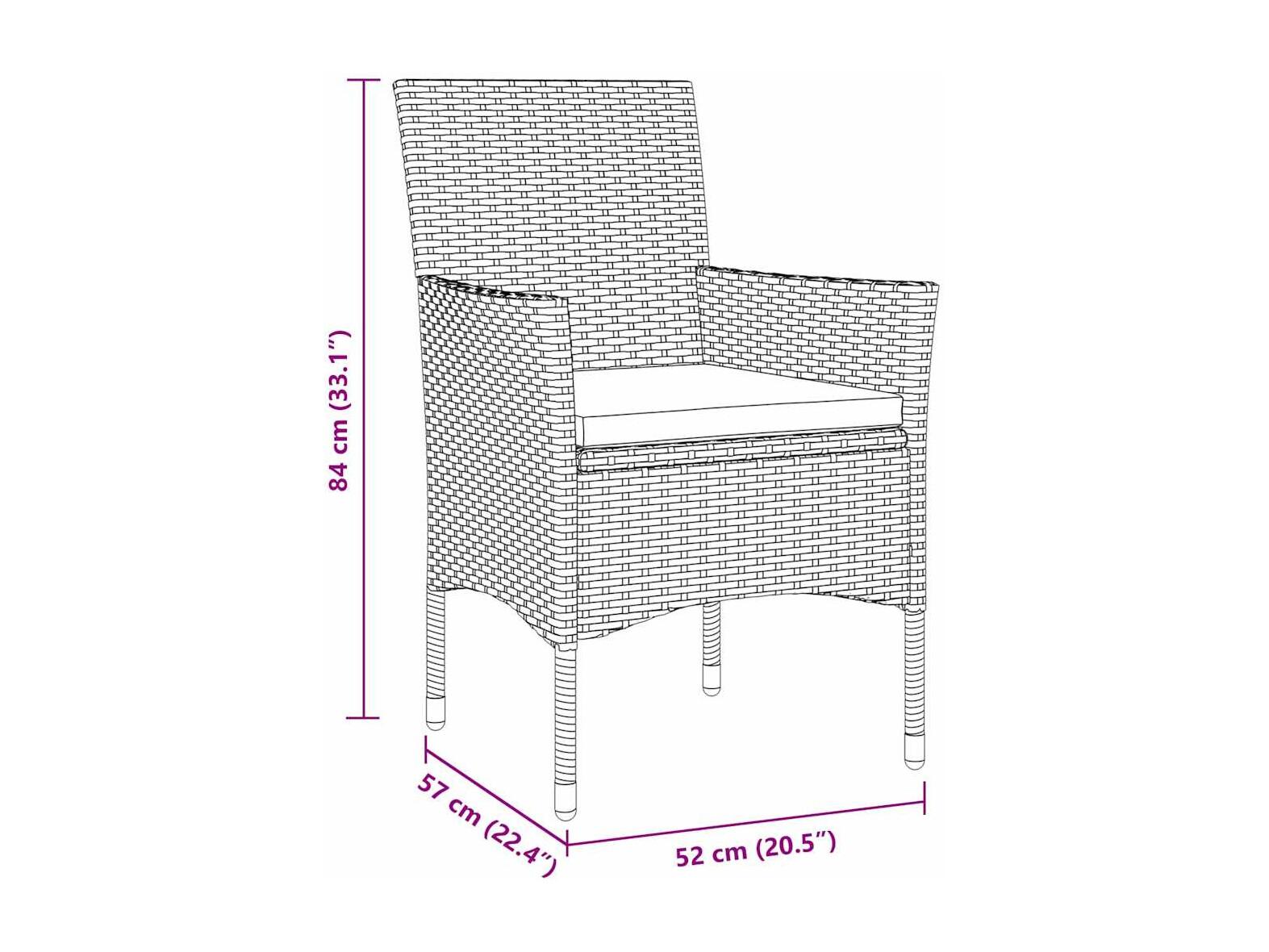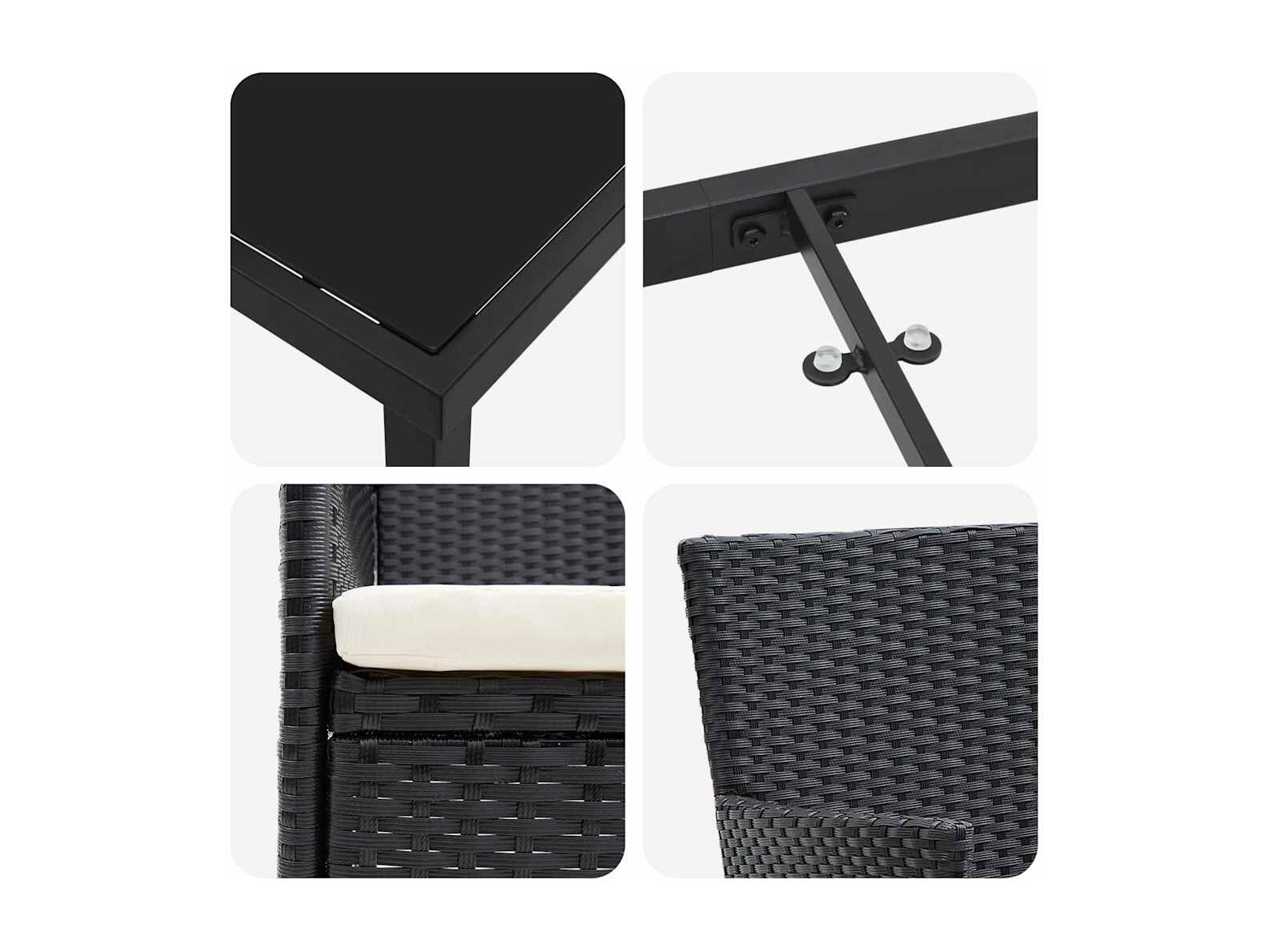 Set de 7 Pièces Cuisine de Jardin avec Coussins Noir Rattan PE